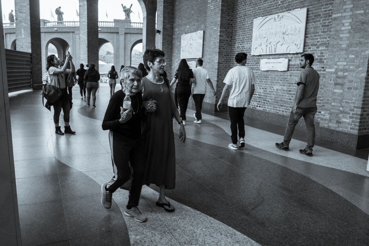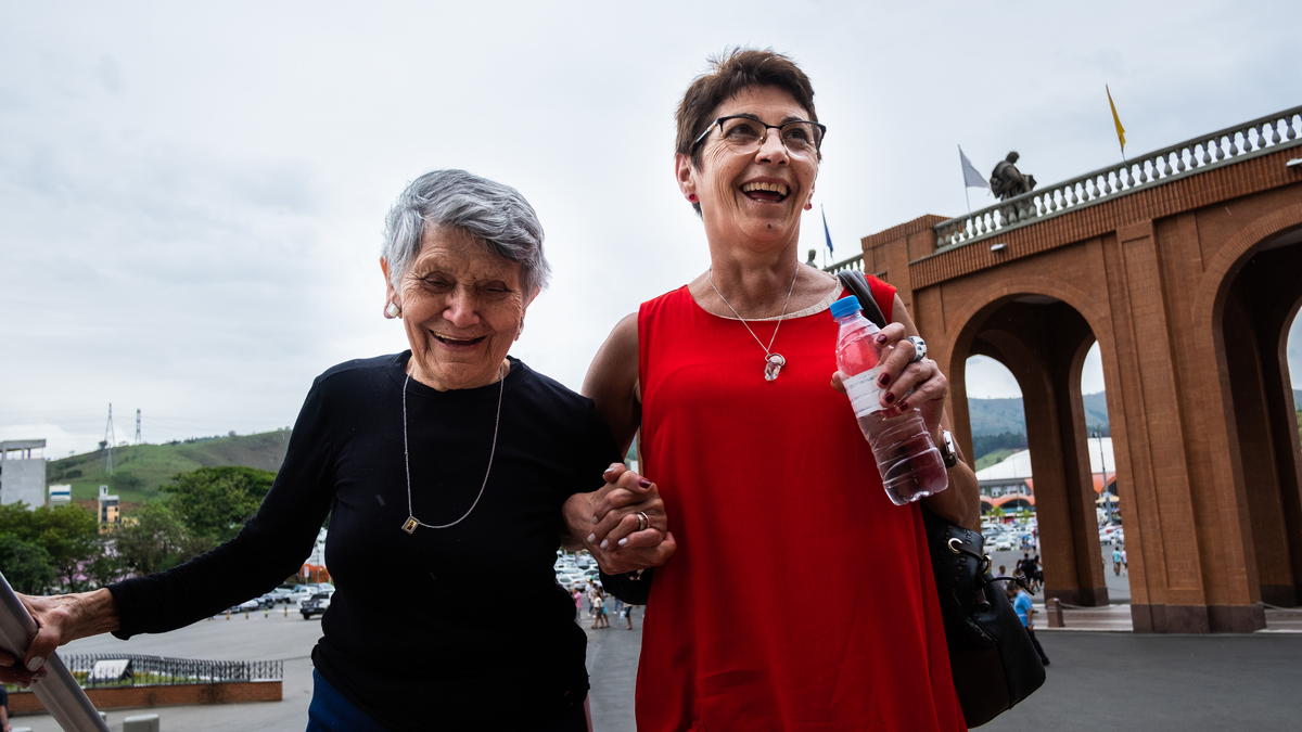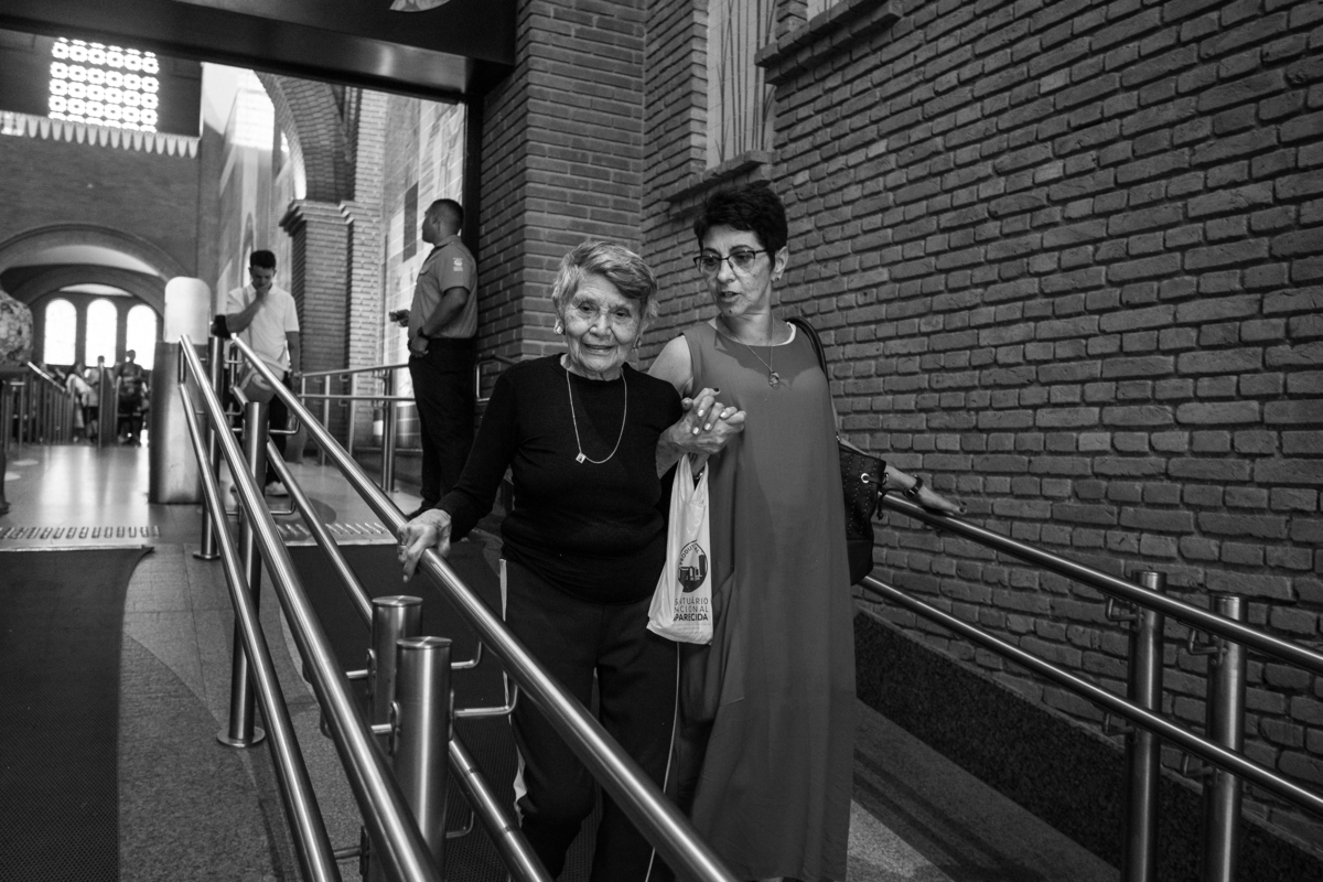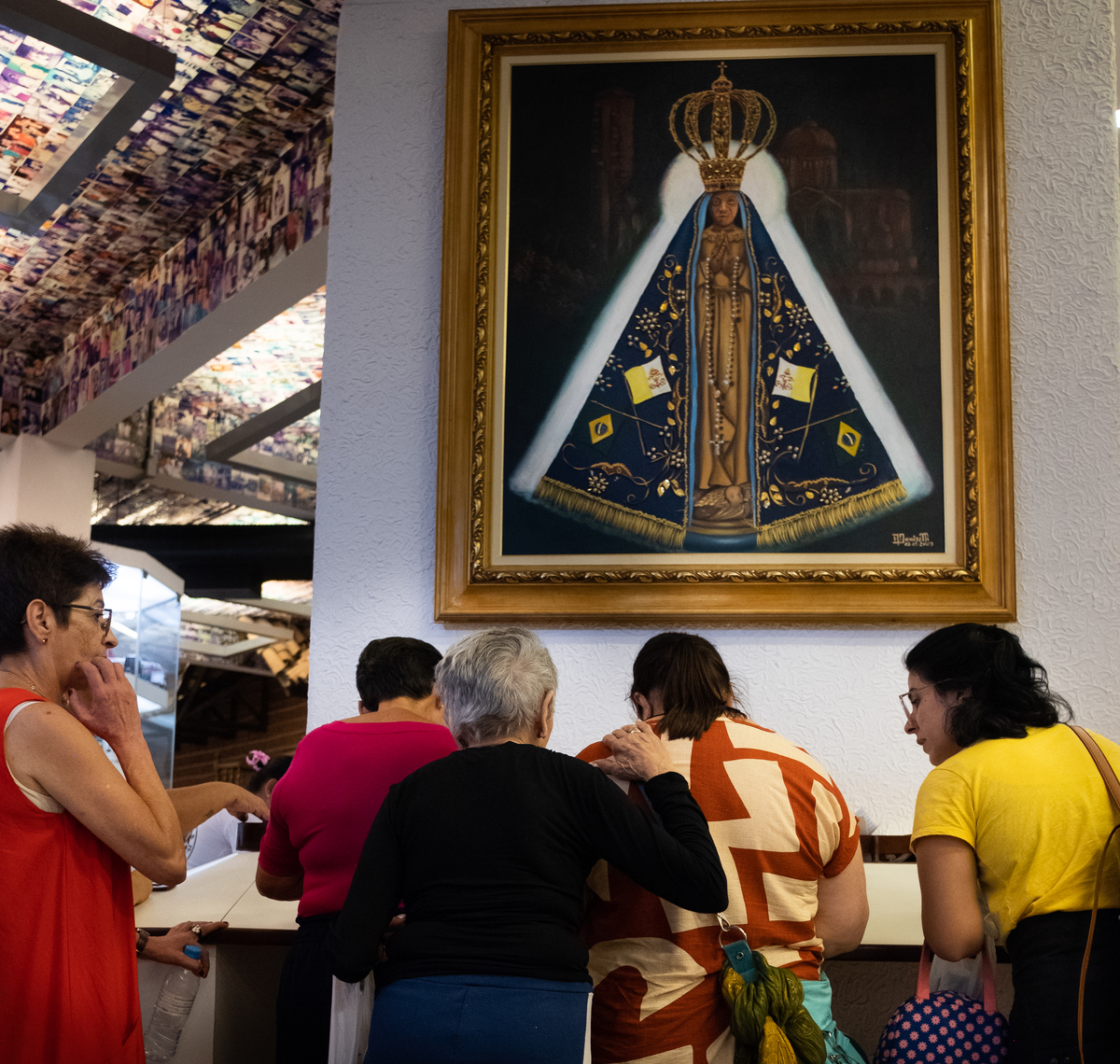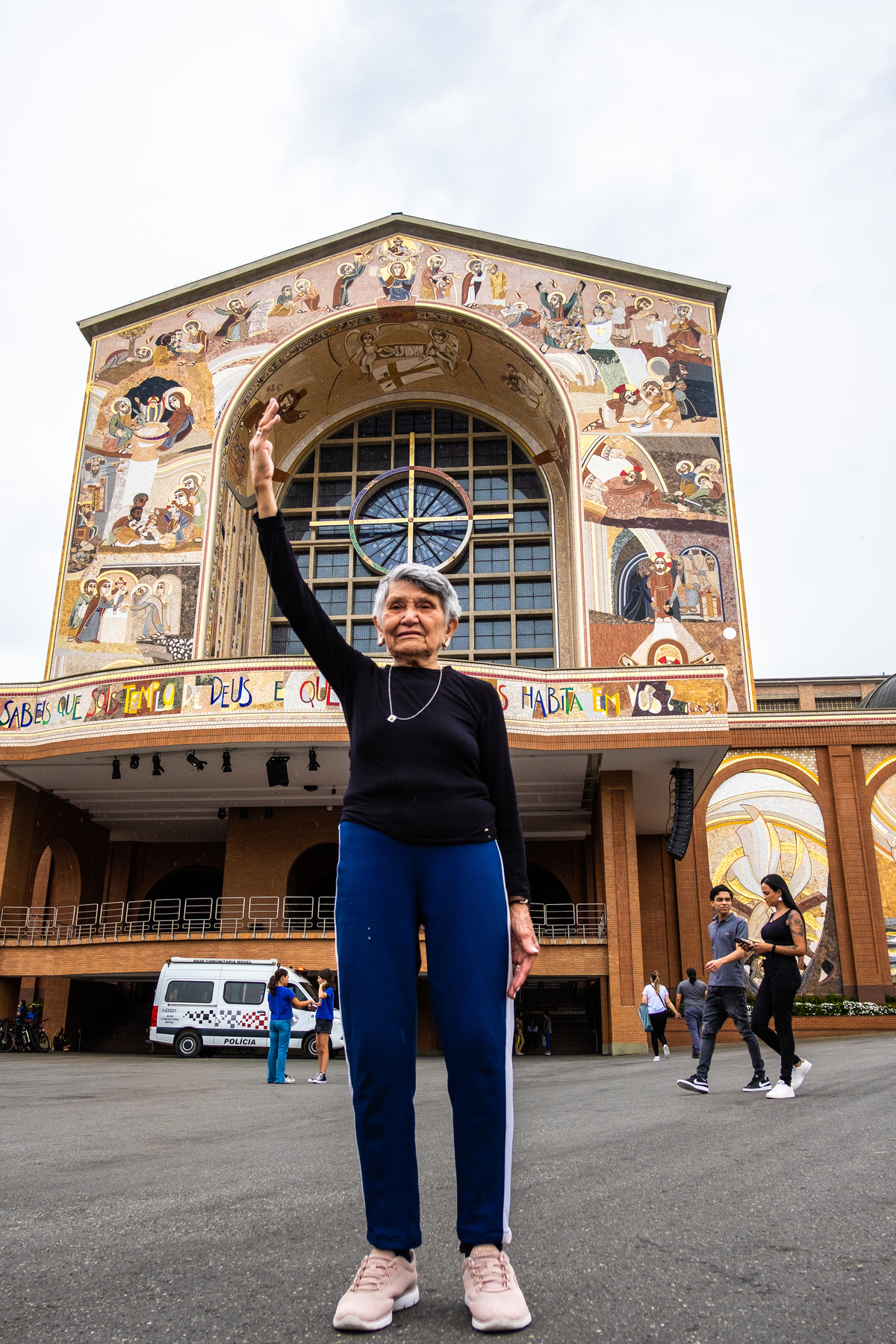 Revisitar Aparecida foi marcante. A ultima vez em que tinha ido, em 1996, tinha 15 anos e estava acompanhado de meus avós, ainda não tinha ido com a minha mãe. Para ela foi um evento muito esperado, pois com 83 anos só tinha visitado Aparecida nos anos 70. Foi emocionante poder fotografá-la e acompanhar seus passos por aqueles lugares. Mais cedo, fomos até a Canção Nova, em Cachoeira Paulista, onde fiz algumas fotos dela e do grupo de colegas que estava conosco. Minha esposa nos acompanhou. À tarde chegamos em Aparecida e fizemos um tour rápido mas emocionante, pelo que representa espiritualmente para minha mãe e emocionalmente para mim. Quero ter essas fotos guardadas para sempre.
