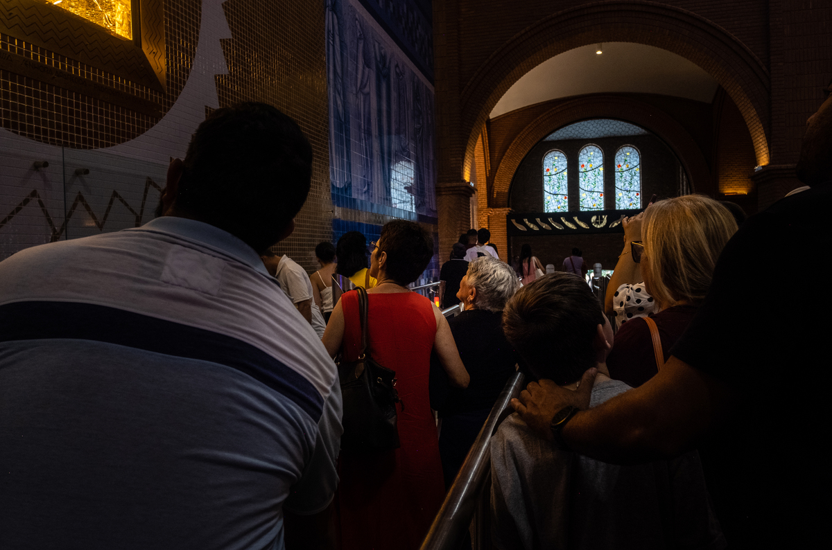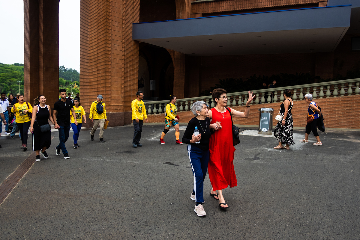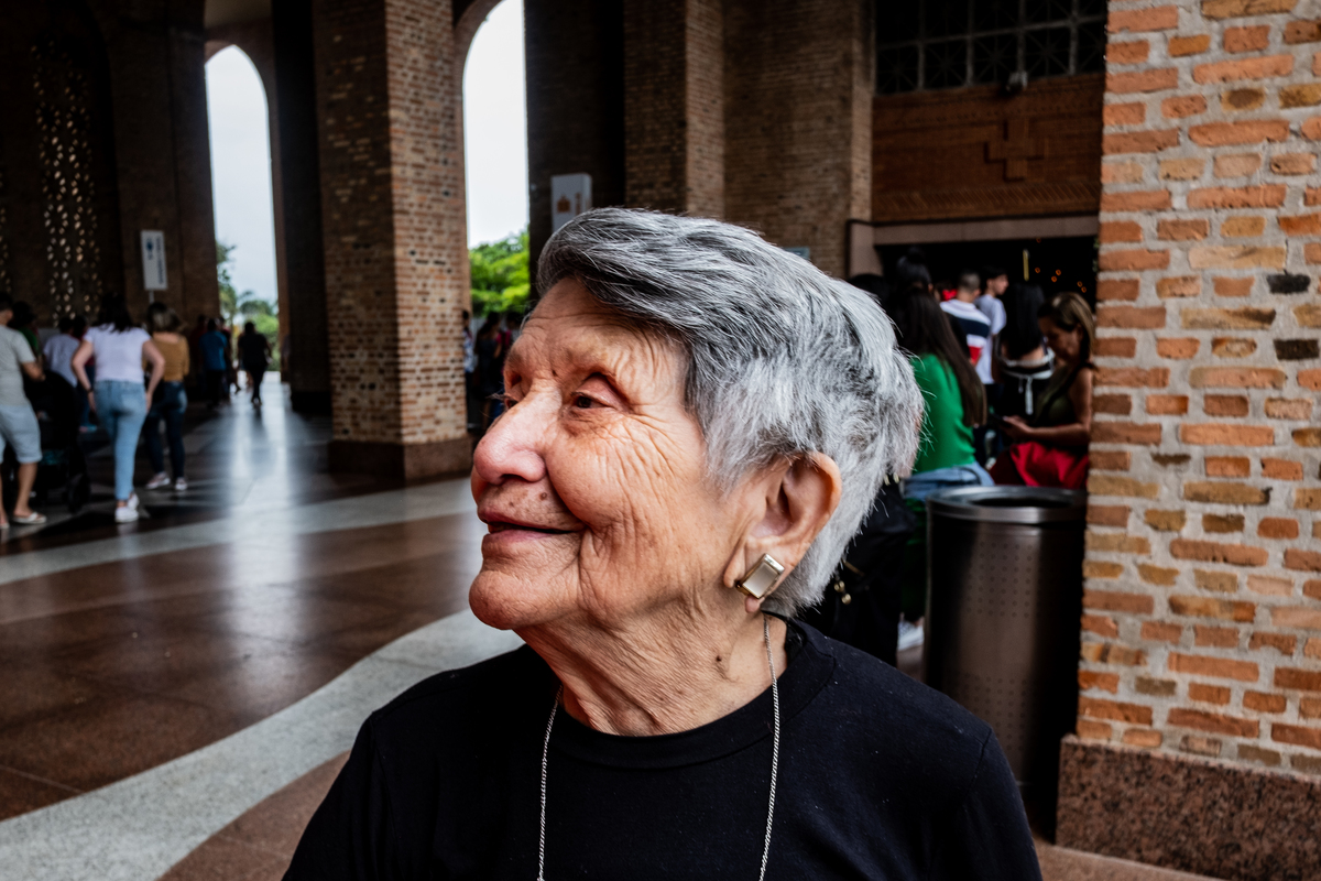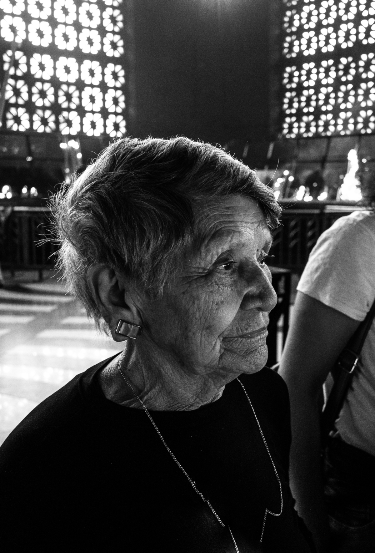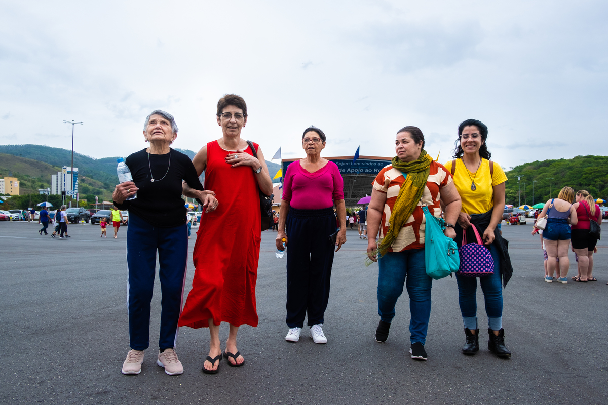 Revisitar Aparecida foi marcante. A ultima vez em que tinha ido, em 1996, tinha 15 anos e estava acompanhado de meus avós, ainda não tinha ido com a minha mãe. Para ela foi um evento muito esperado, pois com 83 anos só tinha visitado Aparecida nos anos 70. Foi emocionante poder fotografá-la e acompanhar seus passos por aqueles lugares. Mais cedo, fomos até a Canção Nova, em Cachoeira Paulista, onde fiz algumas fotos dela e do grupo de colegas que estava conosco. Minha esposa nos acompanhou. À tarde chegamos em Aparecida e fizemos um tour rápido mas emocionante, pelo que representa espiritualmente para minha mãe e emocionalmente para mim. Quero ter essas fotos guardadas para sempre.