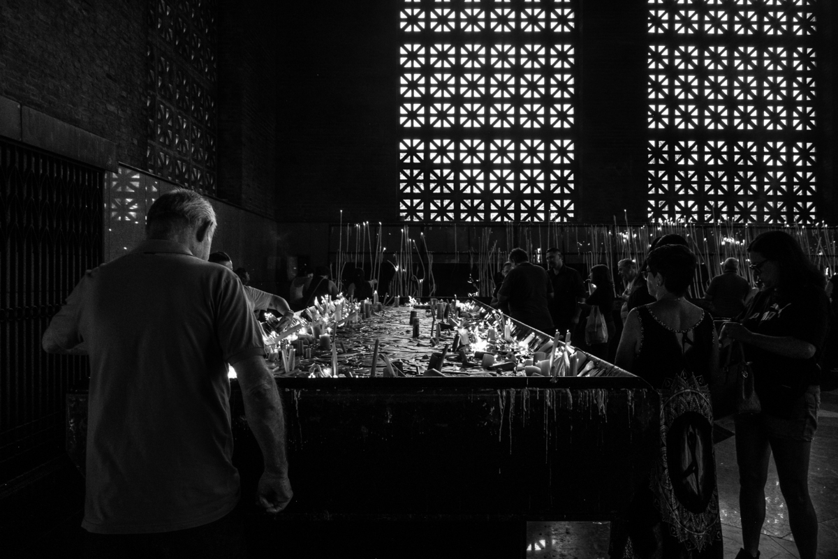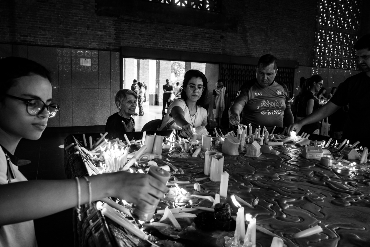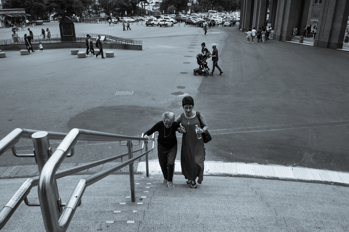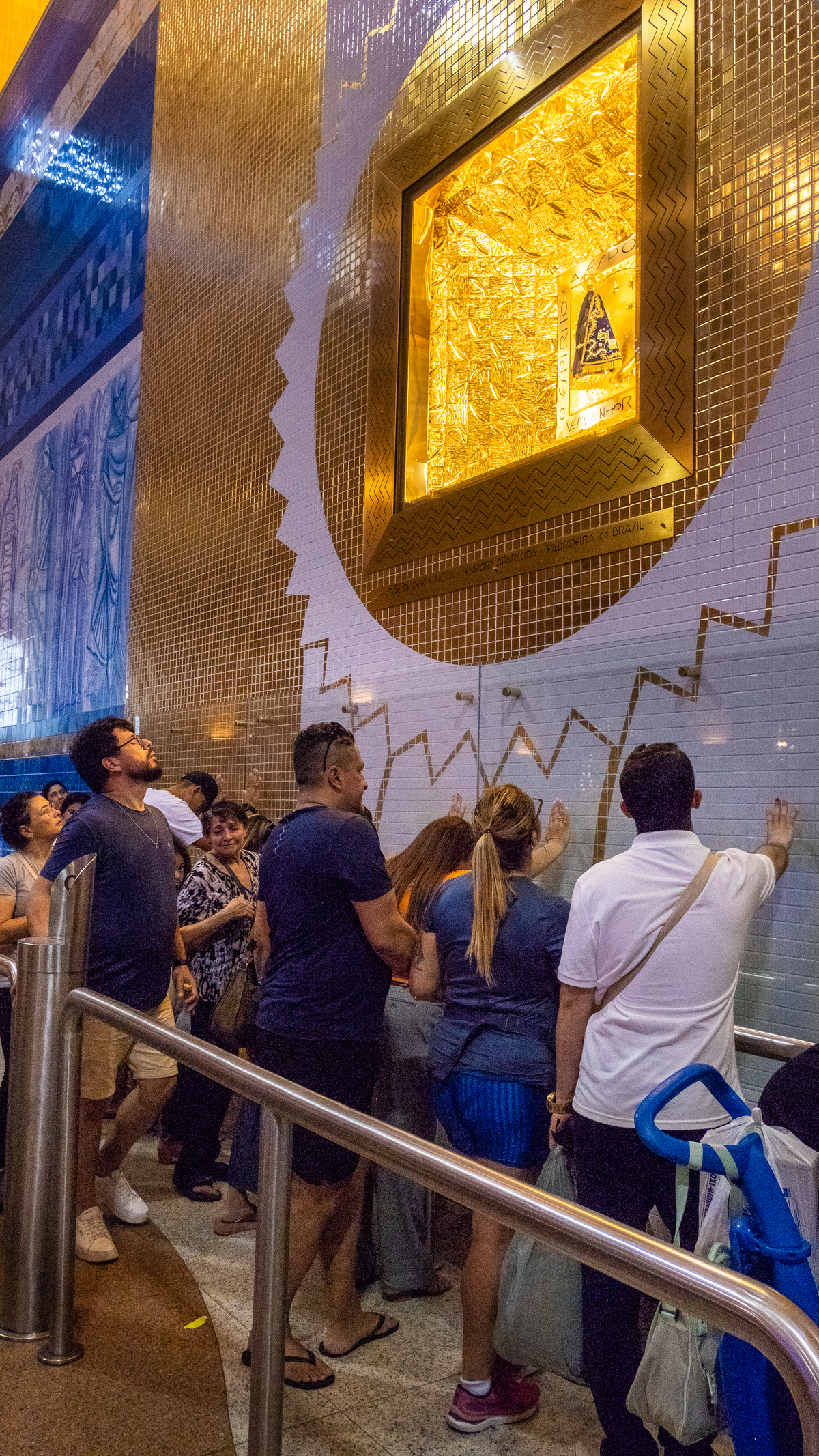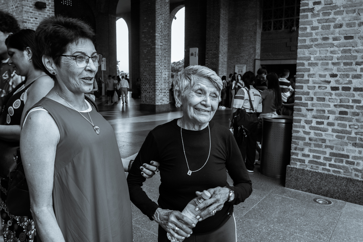 Revisitar Aparecida foi marcante. A ultima vez em que tinha ido, em 1996, tinha 15 anos e estava acompanhado de meus avós, ainda não tinha ido com a minha mãe. Para ela foi um evento muito esperado, pois com 83 anos só tinha visitado Aparecida nos anos 70. Foi emocionante poder fotografá-la e acompanhar seus passos por aqueles lugares. Mais cedo, fomos até a Canção Nova, em Cachoeira Paulista, onde fiz algumas fotos dela e do grupo de colegas que estava conosco. Minha esposa nos acompanhou. À tarde chegamos em Aparecida e fizemos um tour rápido mas emocionante, pelo que representa espiritualmente para minha mãe e emocionalmente para mim. Quero ter essas fotos guardadas para sempre.