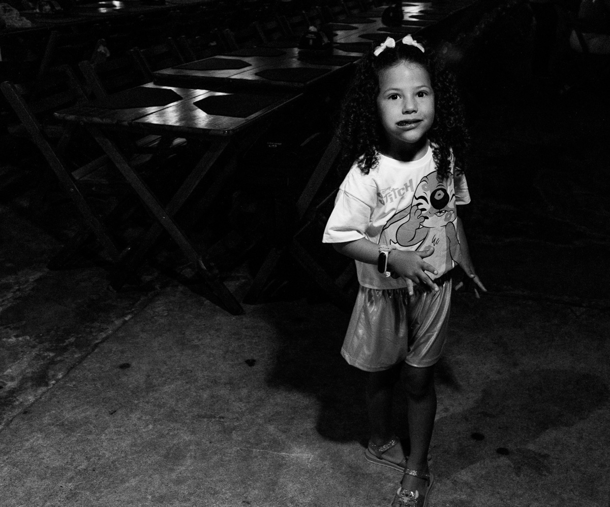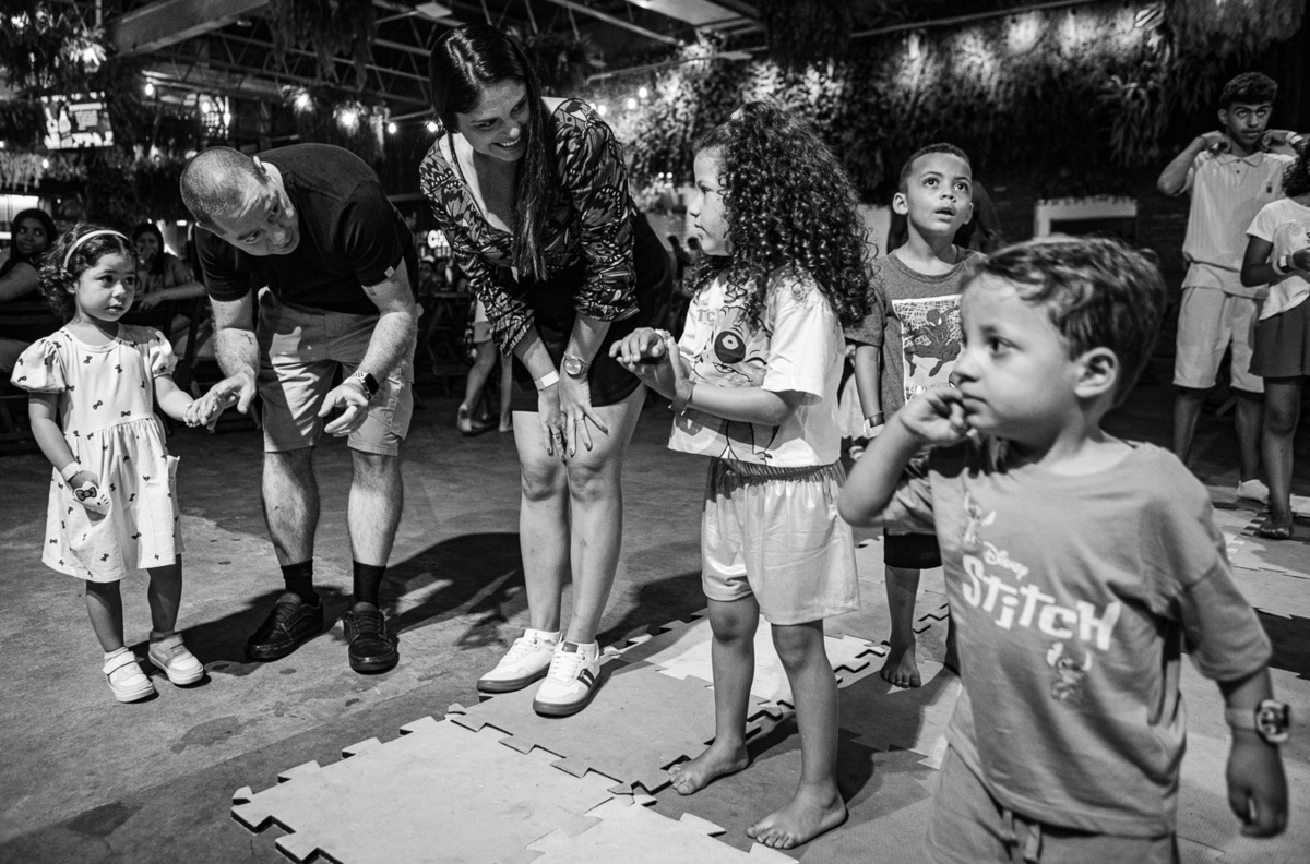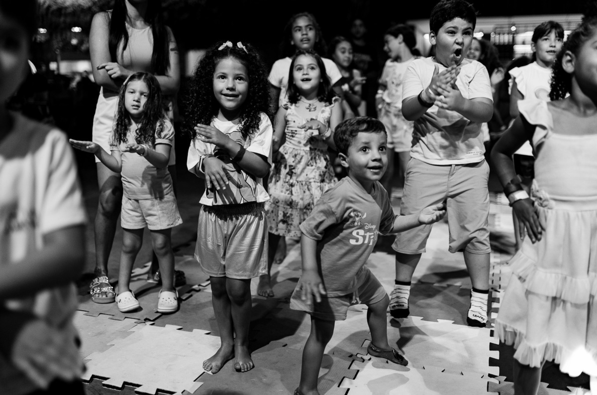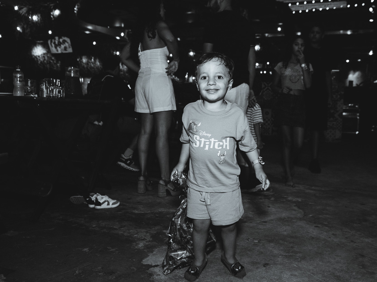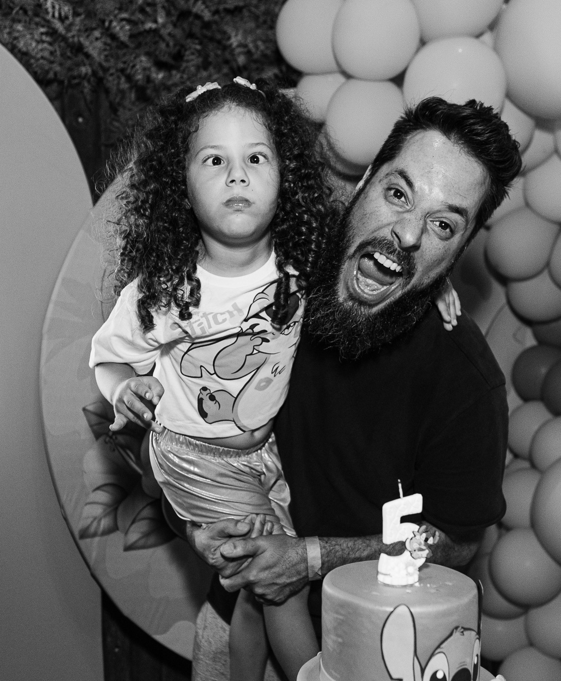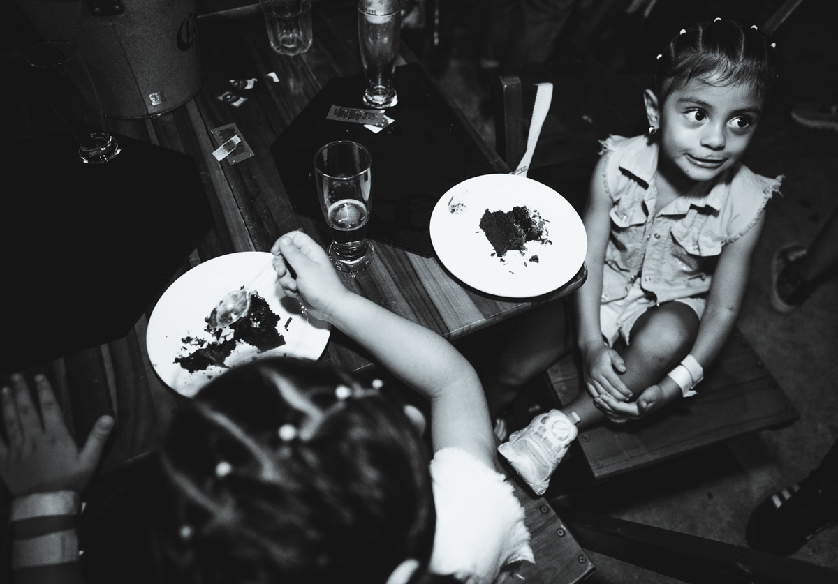 - O preto e branco para focar naquilo que o barulho da festa às vezes esconde: um olhar de lado, a expectativa pelo bolo, o gesto espontâneo.
