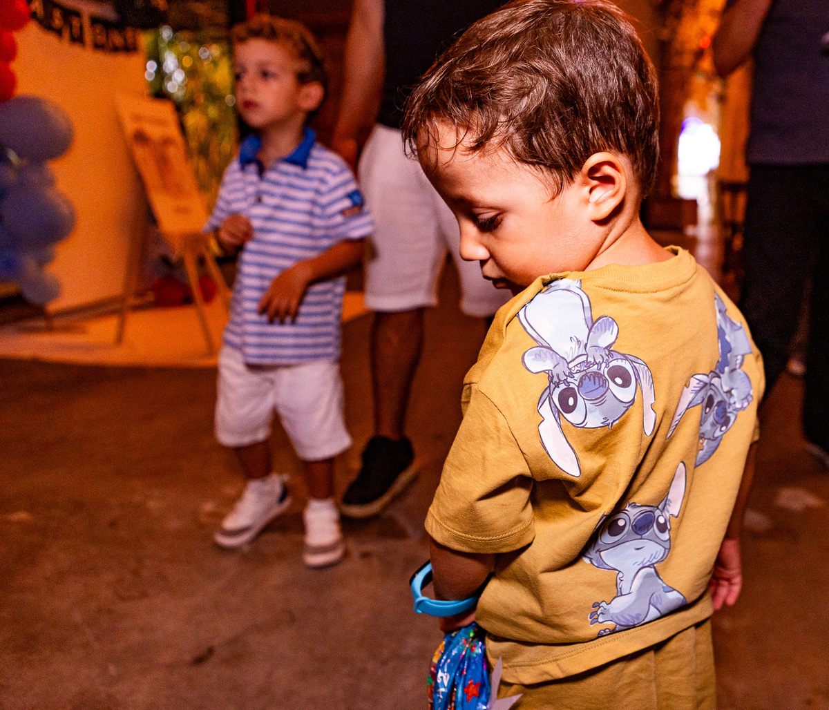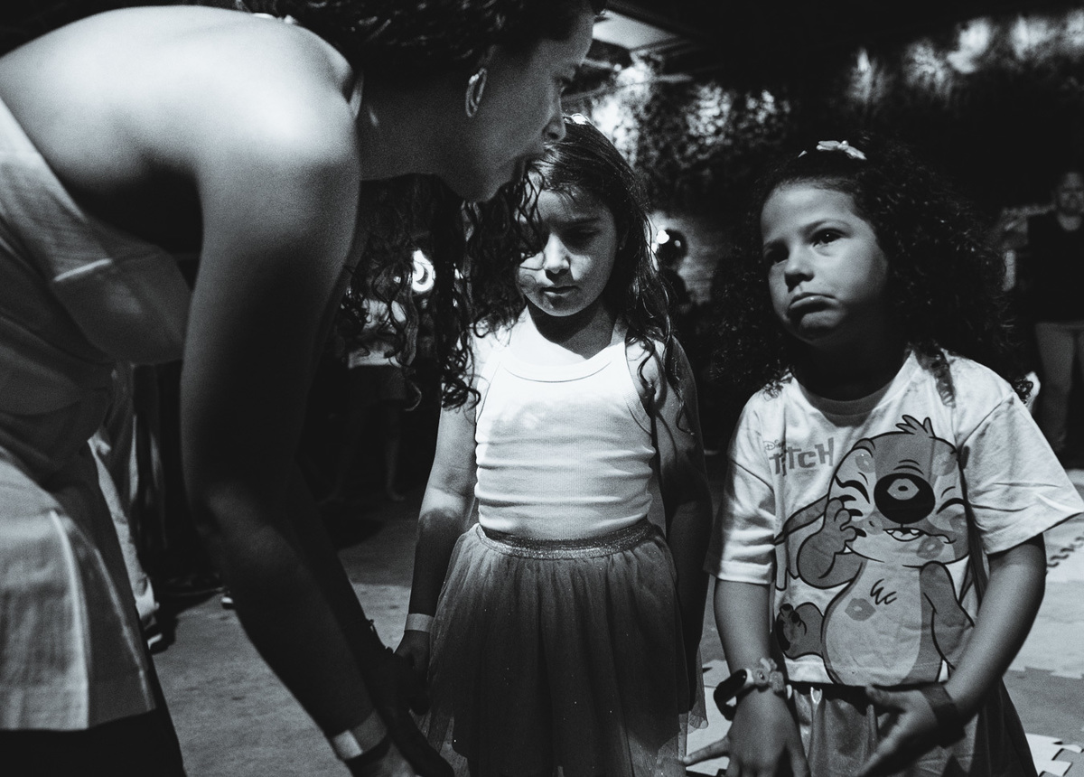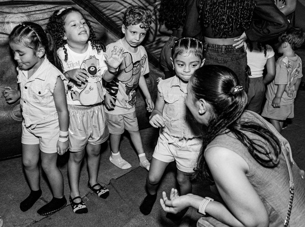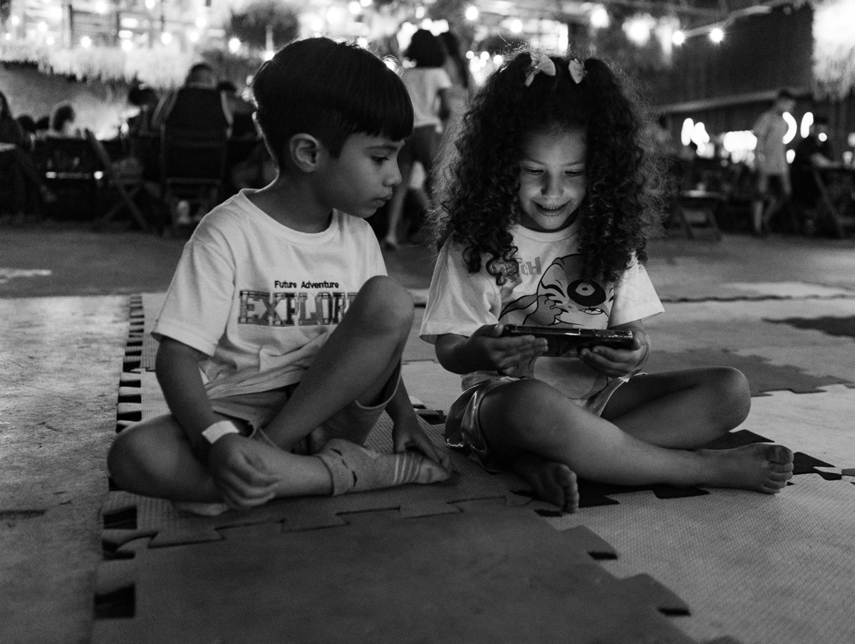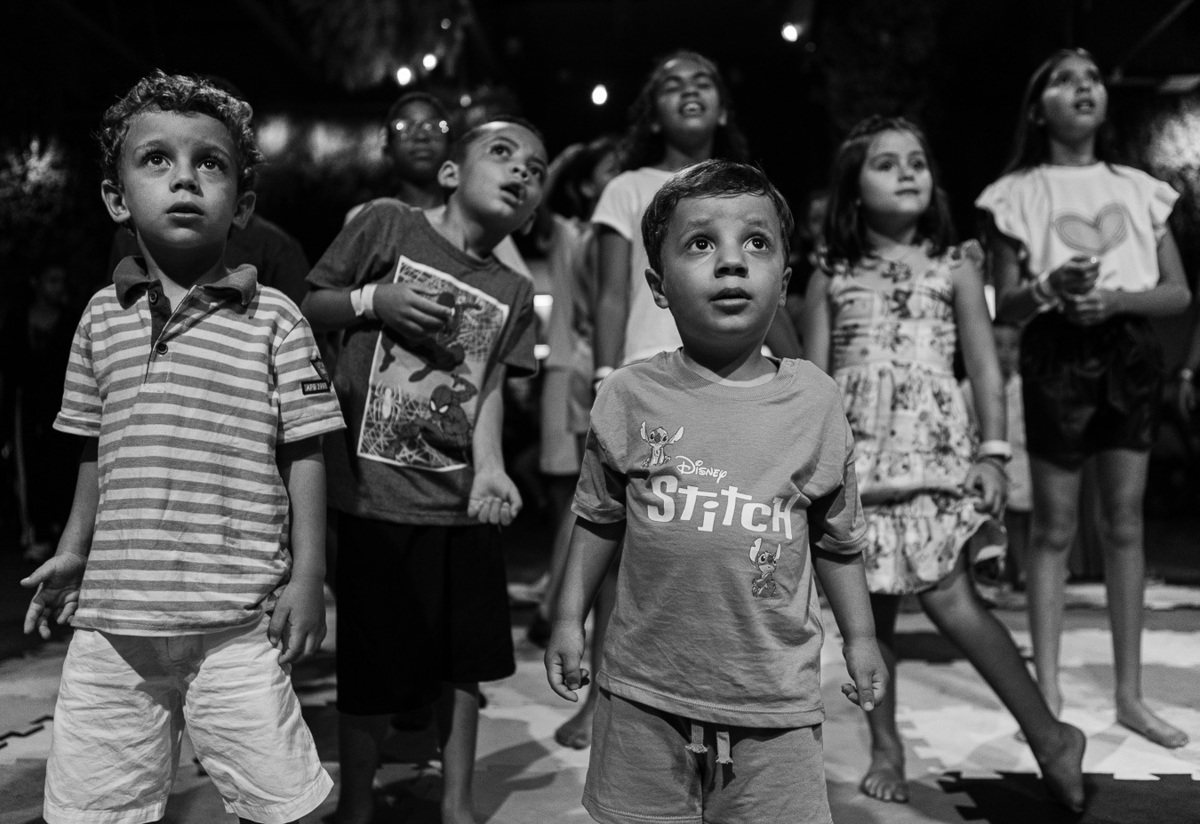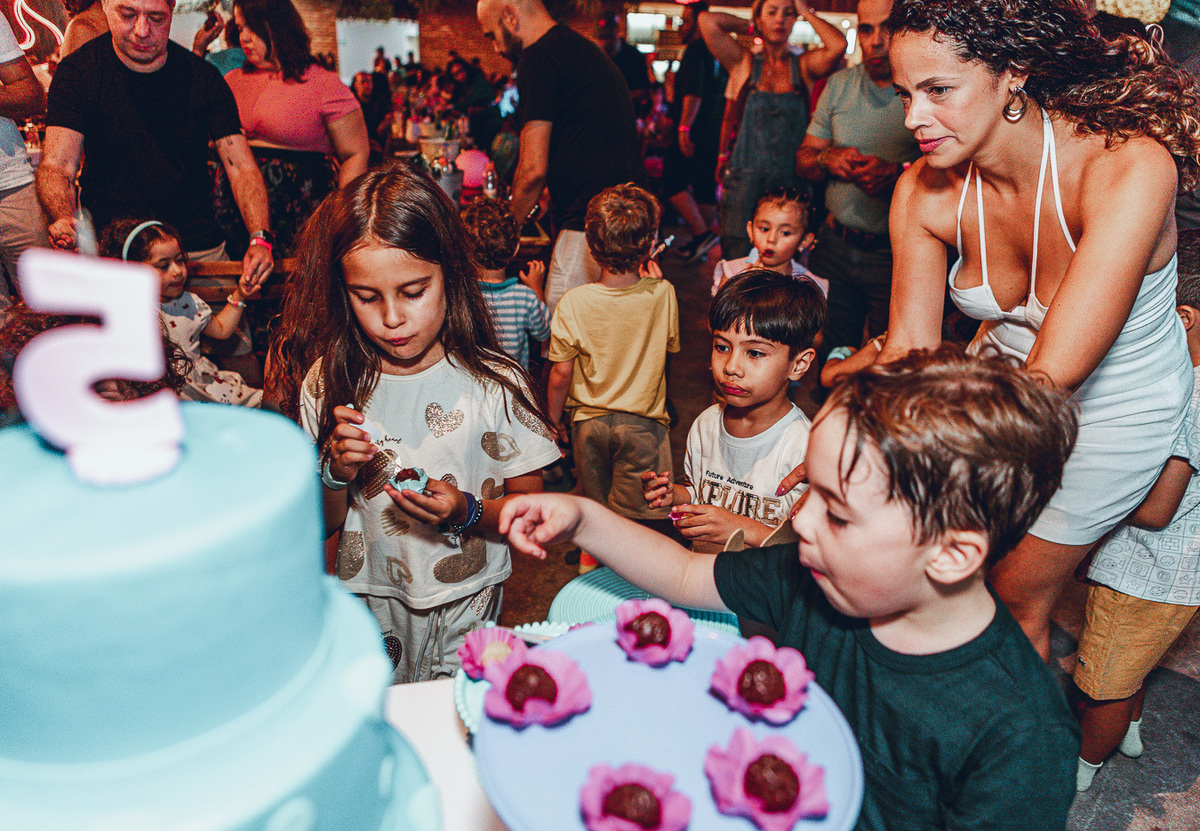 - O preto e branco para focar naquilo que o barulho da festa às vezes esconde: um olhar de lado, a expectativa pelo bolo, o gesto espontâneo.