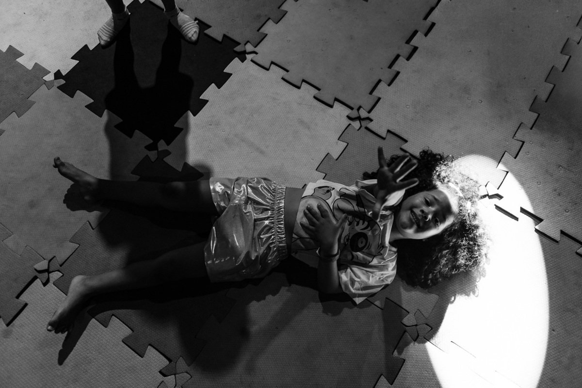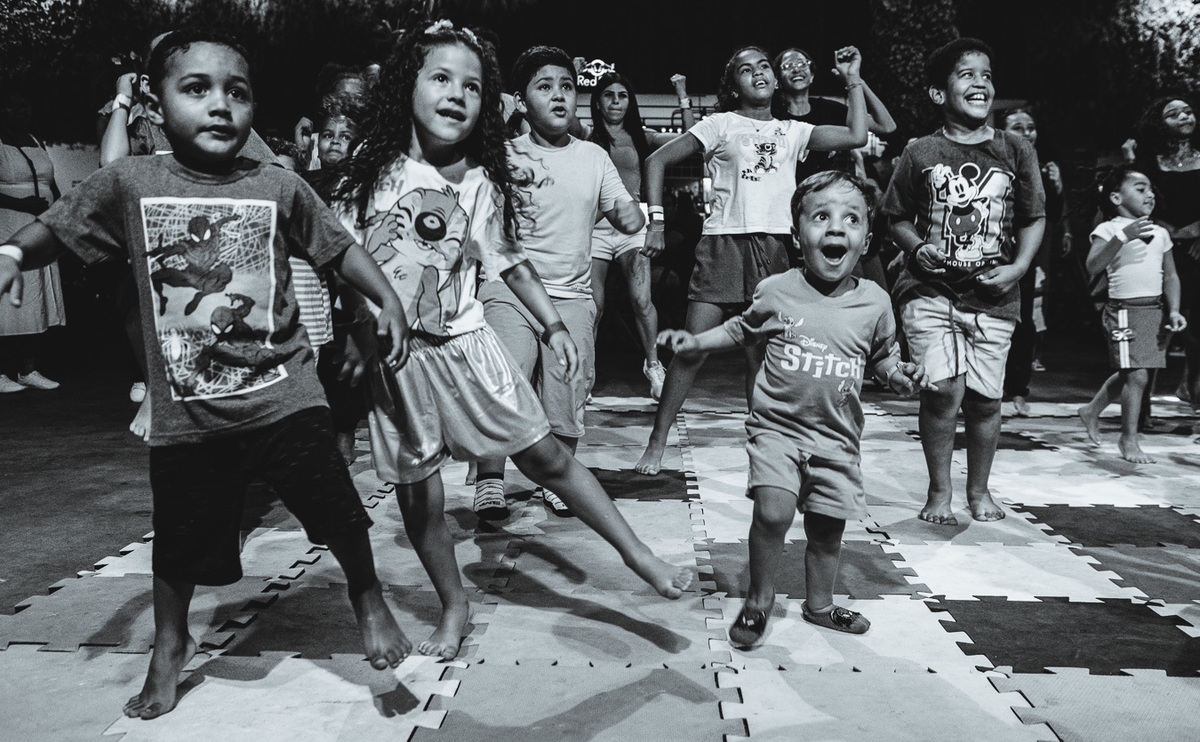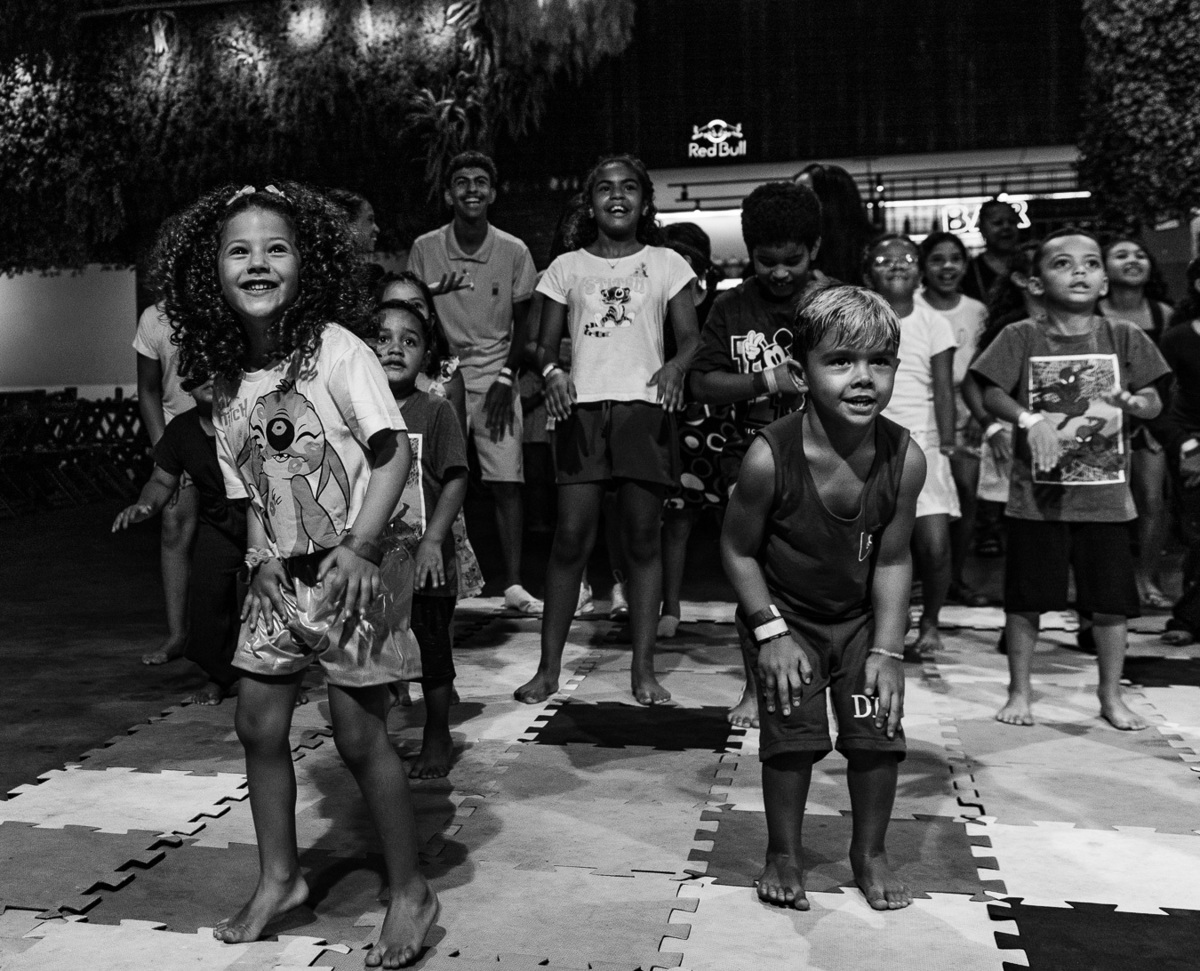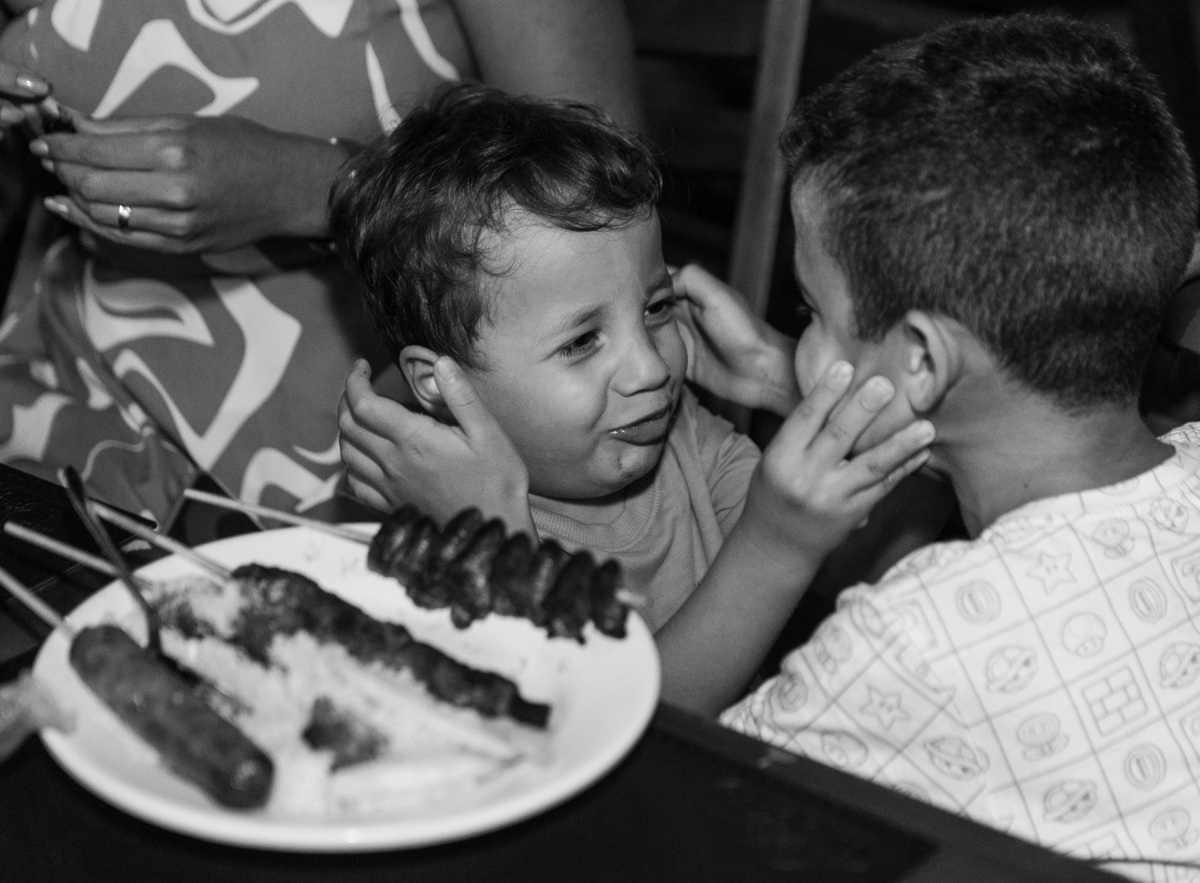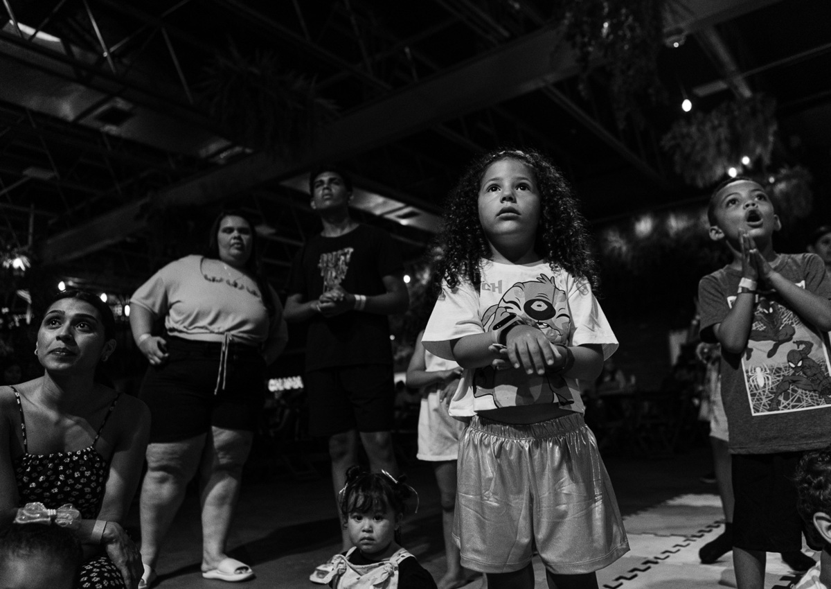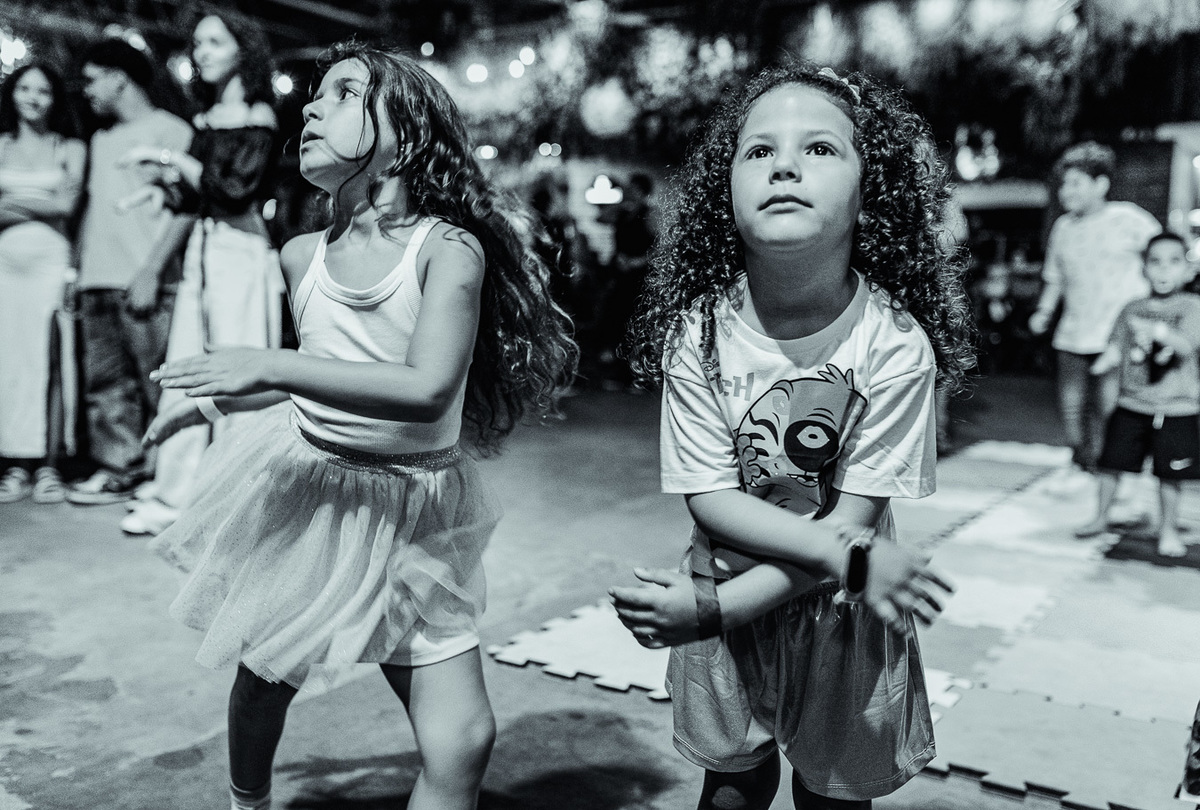 - O preto e branco para focar naquilo que o barulho da festa às vezes esconde: um olhar de lado, a expectativa pelo bolo, o gesto espontâneo.