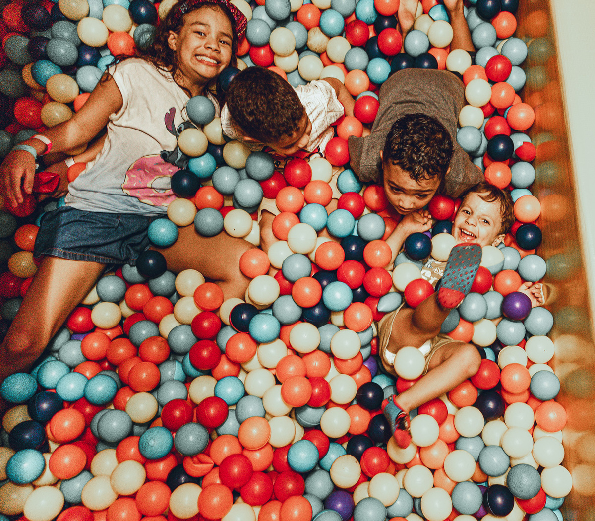 - As cores vivas e a bagunça boa da piscina de bolinhas, porque a infância é, acima de tudo, vibração e movimento.