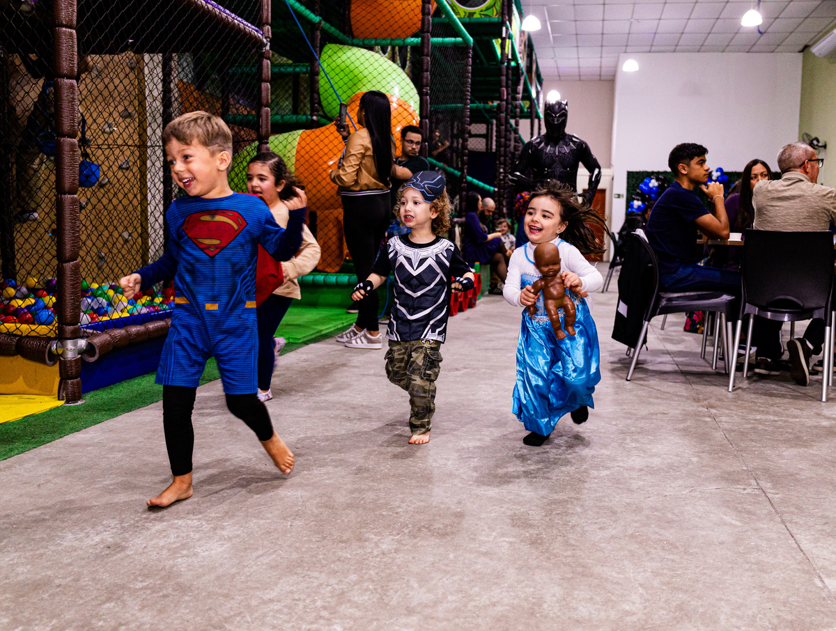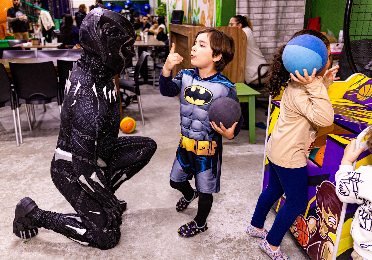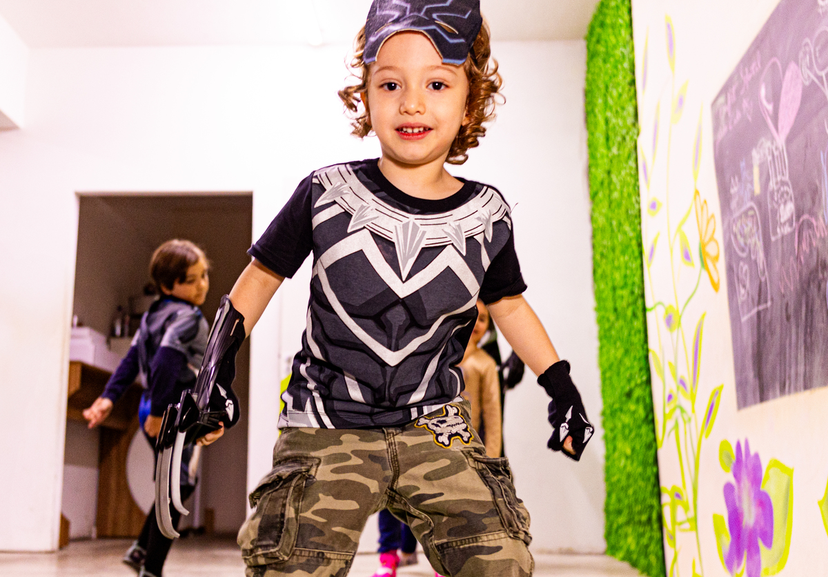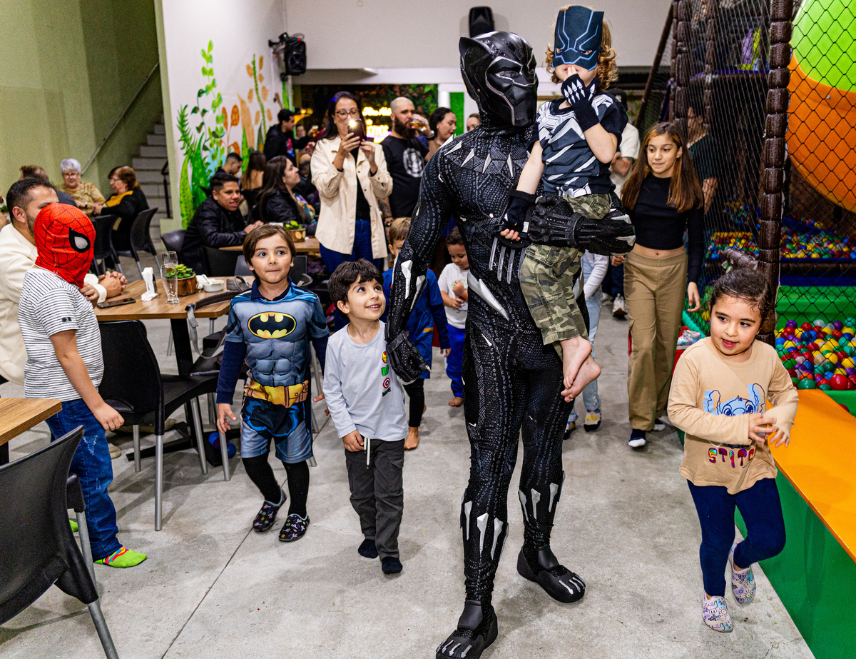 Fotografei a energia contagiante e a alegria da festa de 4 anos do pequeno Gabriel, realizada no bairro da Mooca. O tema escolhido, o Pantera Negra, transformou o espaço em um reino de aventuras e fantasia.