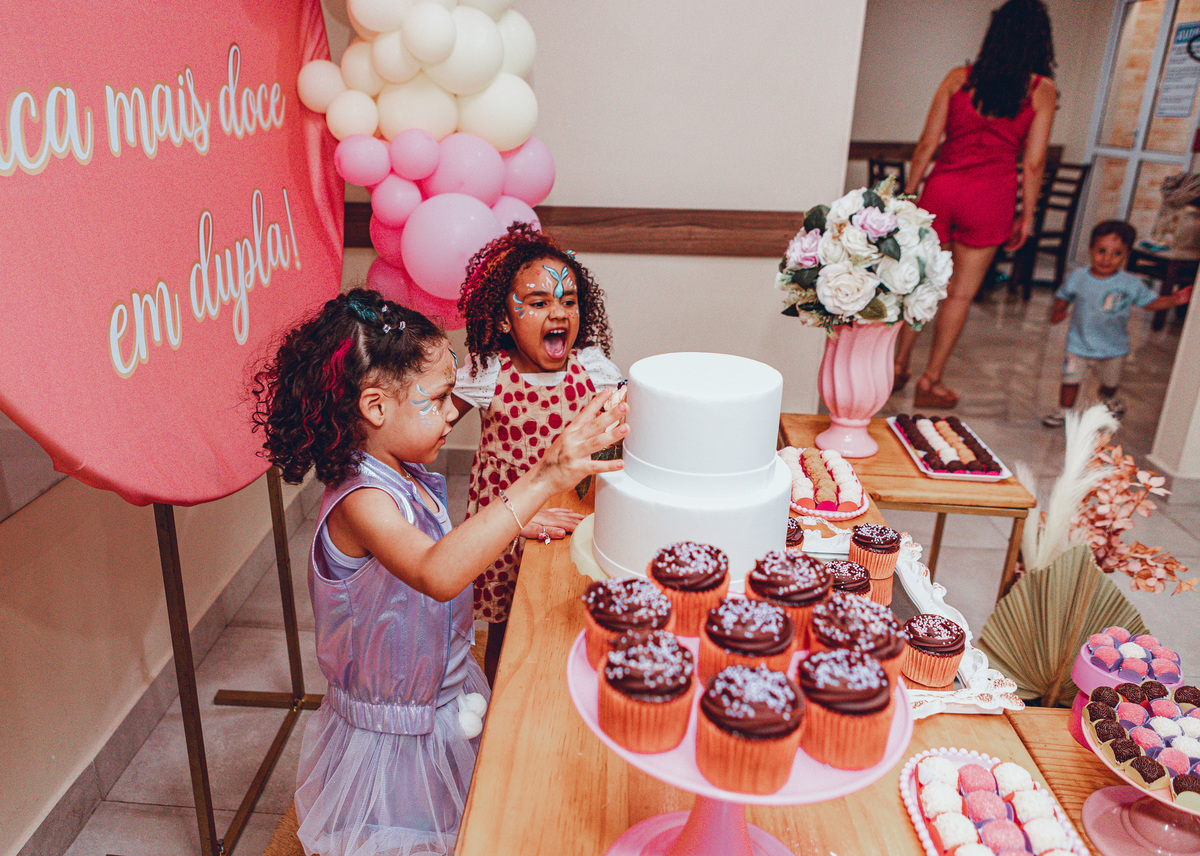 Fotografar a Joyce e a Heloísa celebrando seus aniversários juntas foi um privilégio. Não foi apenas uma festa dupla: foi a celebração de um vínculo que define a família.