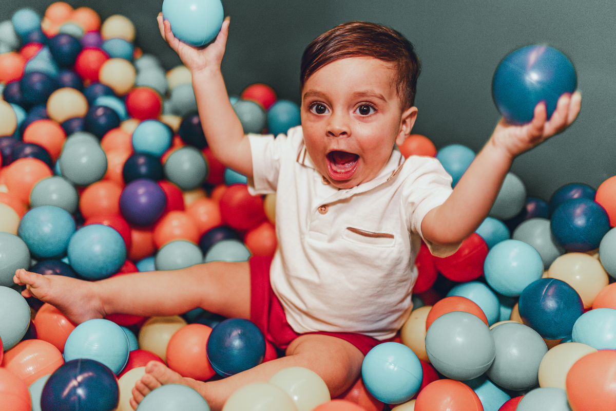 O Arthur aproveitou cada segundo! Desde os mergulhos na piscina de bolinhas até o carinho recebido no colo dos pais e das dindas. Foi lindo ver a interação dele com as outras crianças e a curiosidade com cada detalhe da festa.