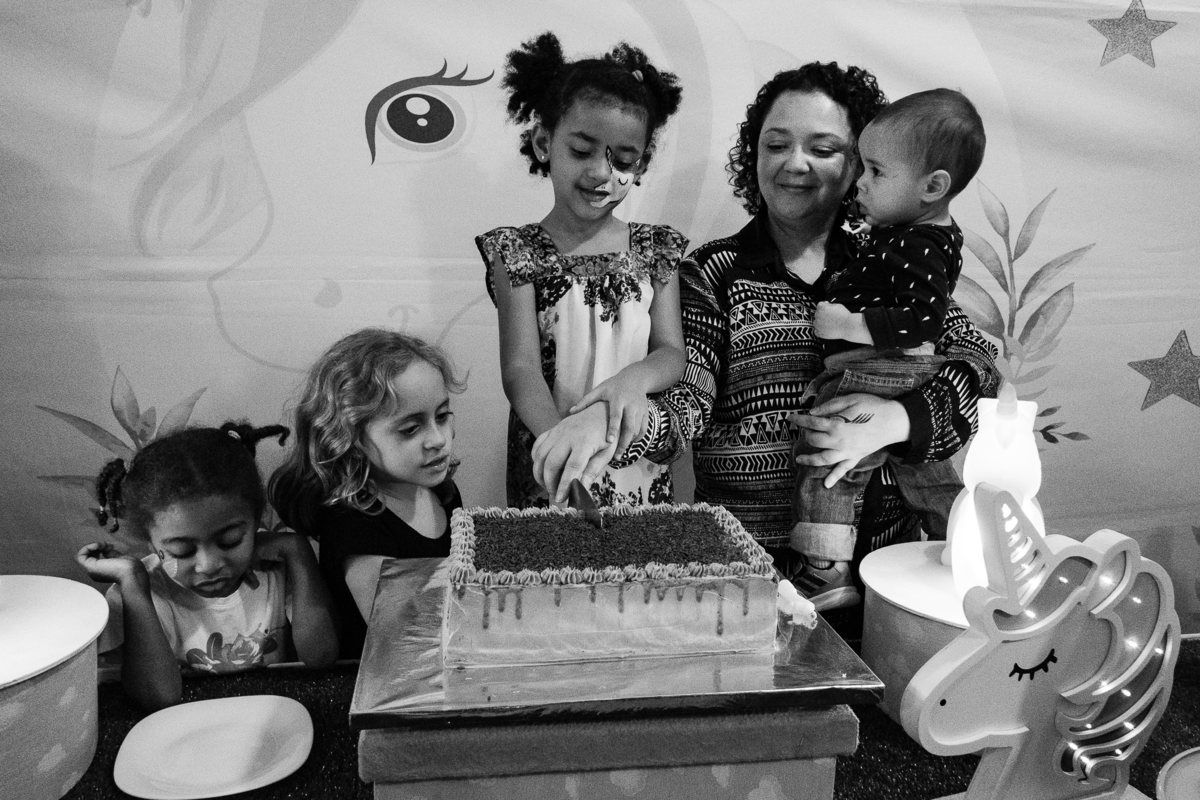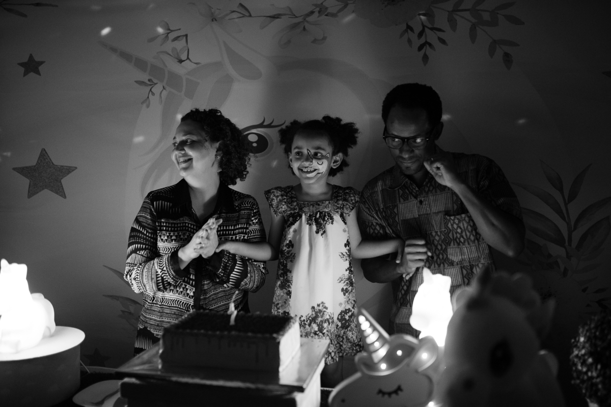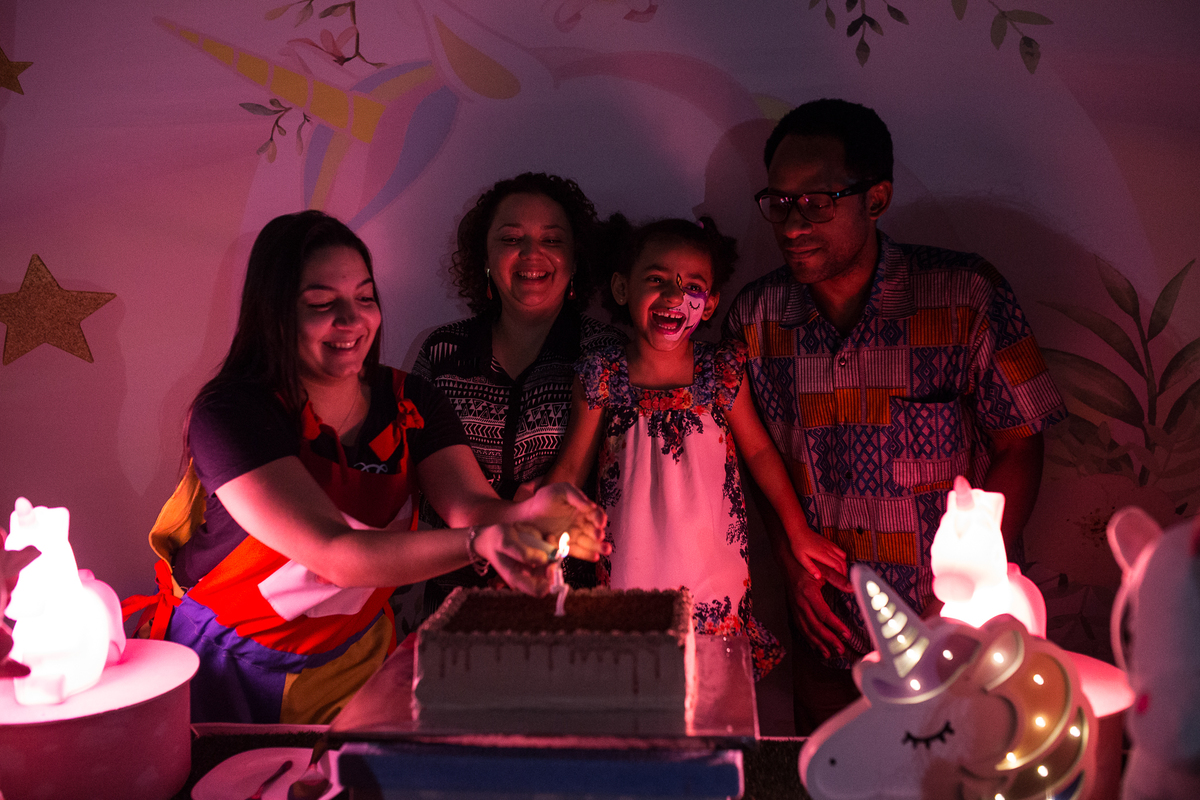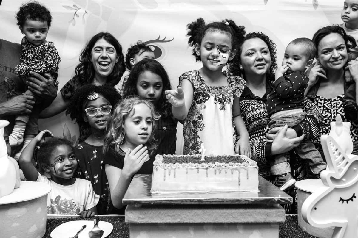 Na hora do parabéns, a iluminação da vela dos sete anos e uma dúzia de unicórnios me deram a luz de cena que eu precisava. Cada momento da infância deve ser fotografado. O tempo passa muito rápido e o que fica e nos fazem relembrar as passagens da vida são as fotografias.