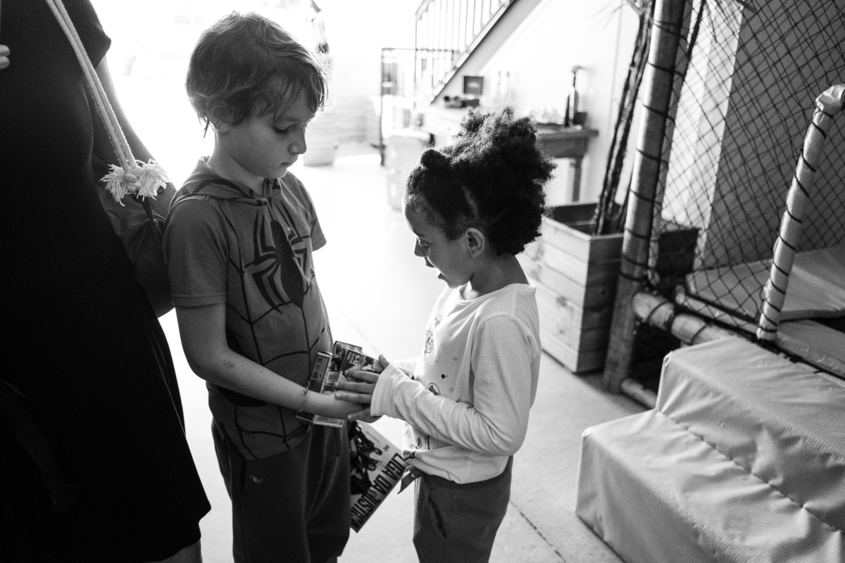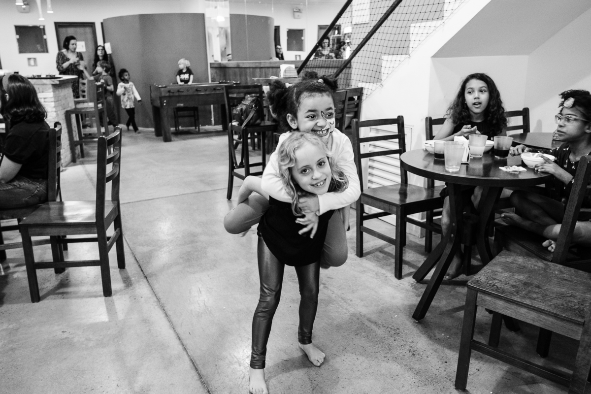 A Sofia estava muito feliz com a festa que estava por vir. Unicórnios, muitos deles, a estavam esperando em uma mesa decorada com cores e luzes. Quando ela chegou, tratou logo de ir ver tudo aquilo que foi cuidadosamente preparado para celebrar seu aniversário. Os amigos foram chegando. Muitos presentes recebidos. Uma das crianças convidadas me chamou a atenção. Ela não saia de perto da Sofia, e logo entendi que tratava-se de sua melhor amiga. De fato, nas imagens registradas é possível ver a força da amizade delas. Sabendo disso eu quis retratar aquela amizade genuína. As chamei e fiz um retrato o qual espero que daqui a 30 anos elas vejam e se lembrem desse dia.