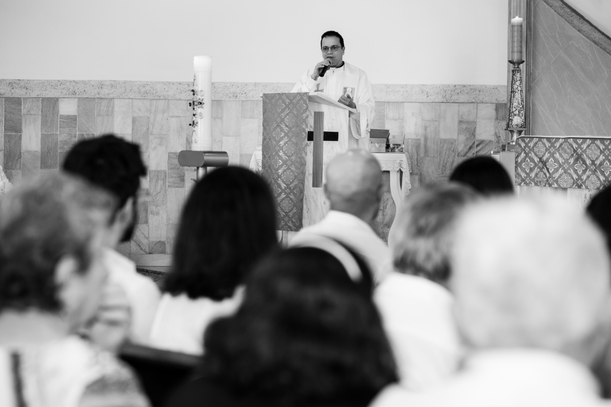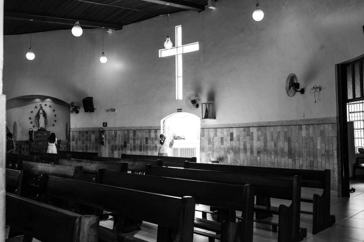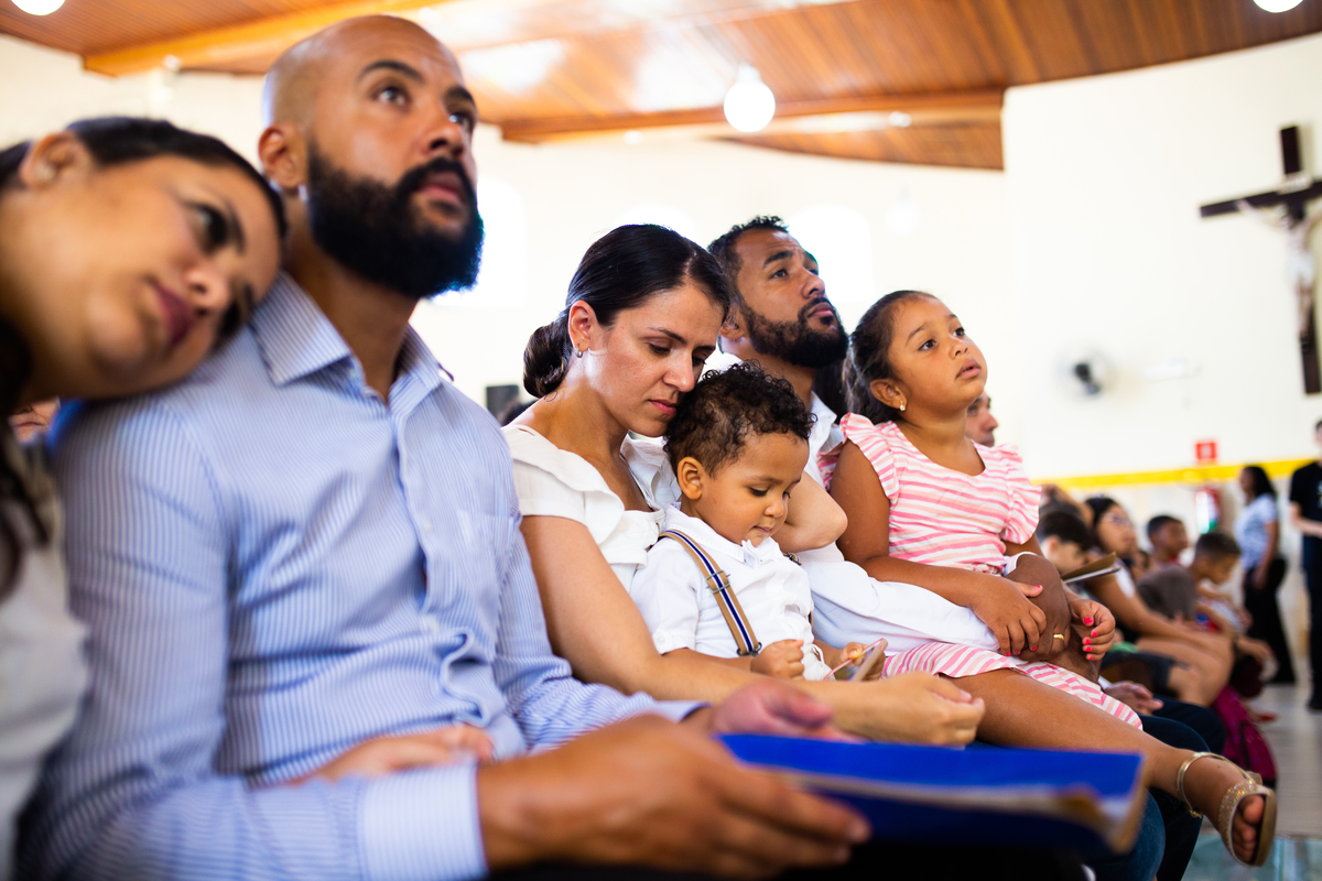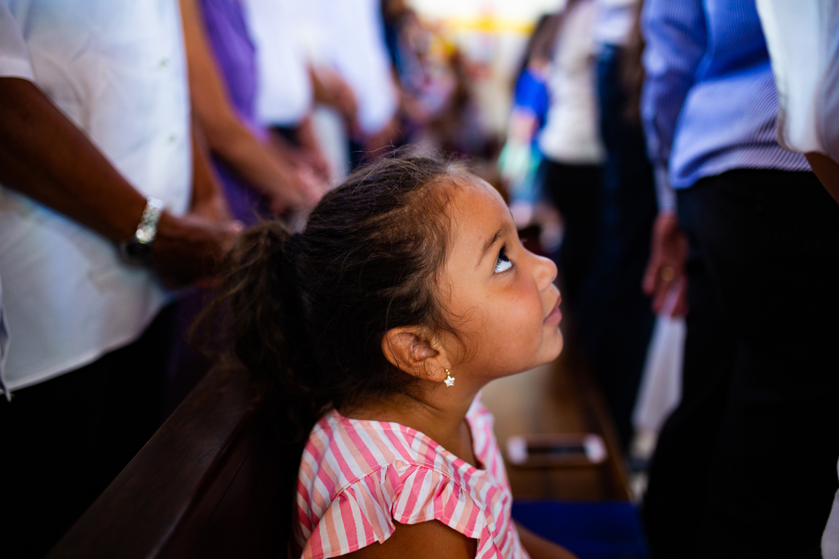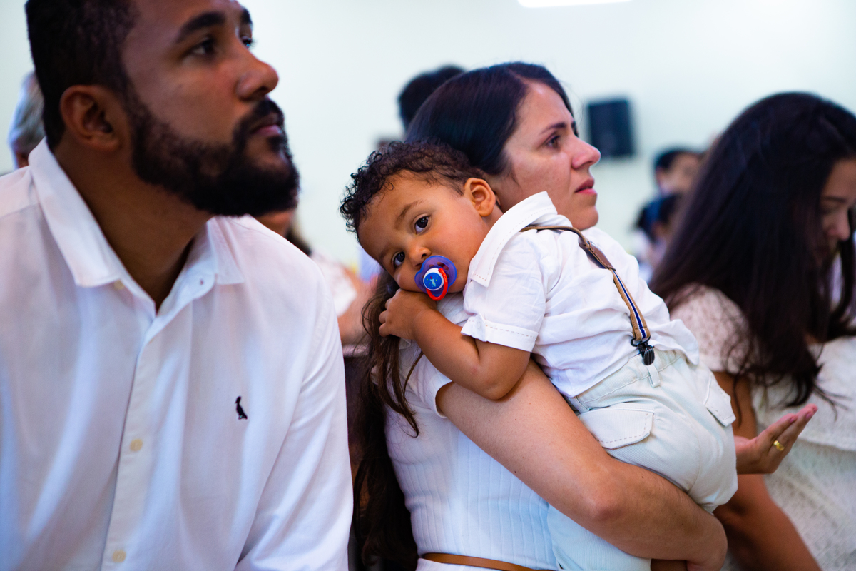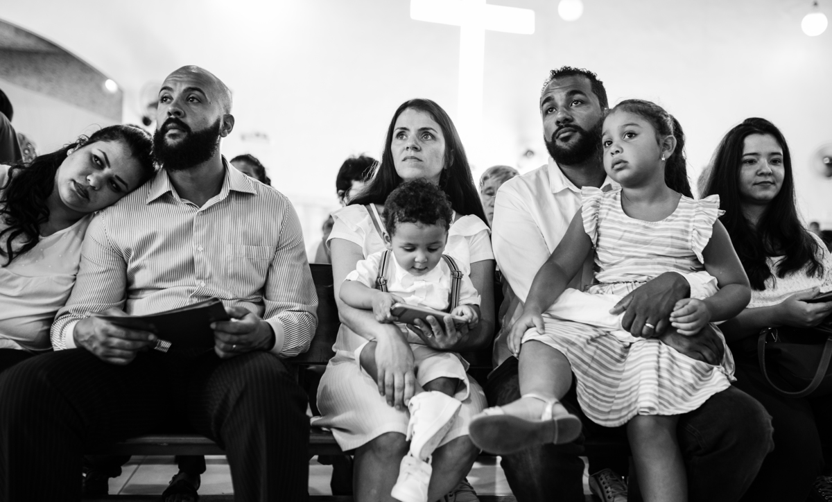 Acompanho muitas famílias e já fotografei muitos momentos especiais. Com a família do Gabriel não foi diferente. Gabriel estava bastante animado e sapeca. Queria andar pela igreja e ver de perto a pia batismal onde receberia um dos sacramentos mais importantes do cristianismo. De tanta energia despendida ele acabou dormindo no meio da cerimônia e acreditem, acordou com a água do batismo molhando sua cabeça!!
