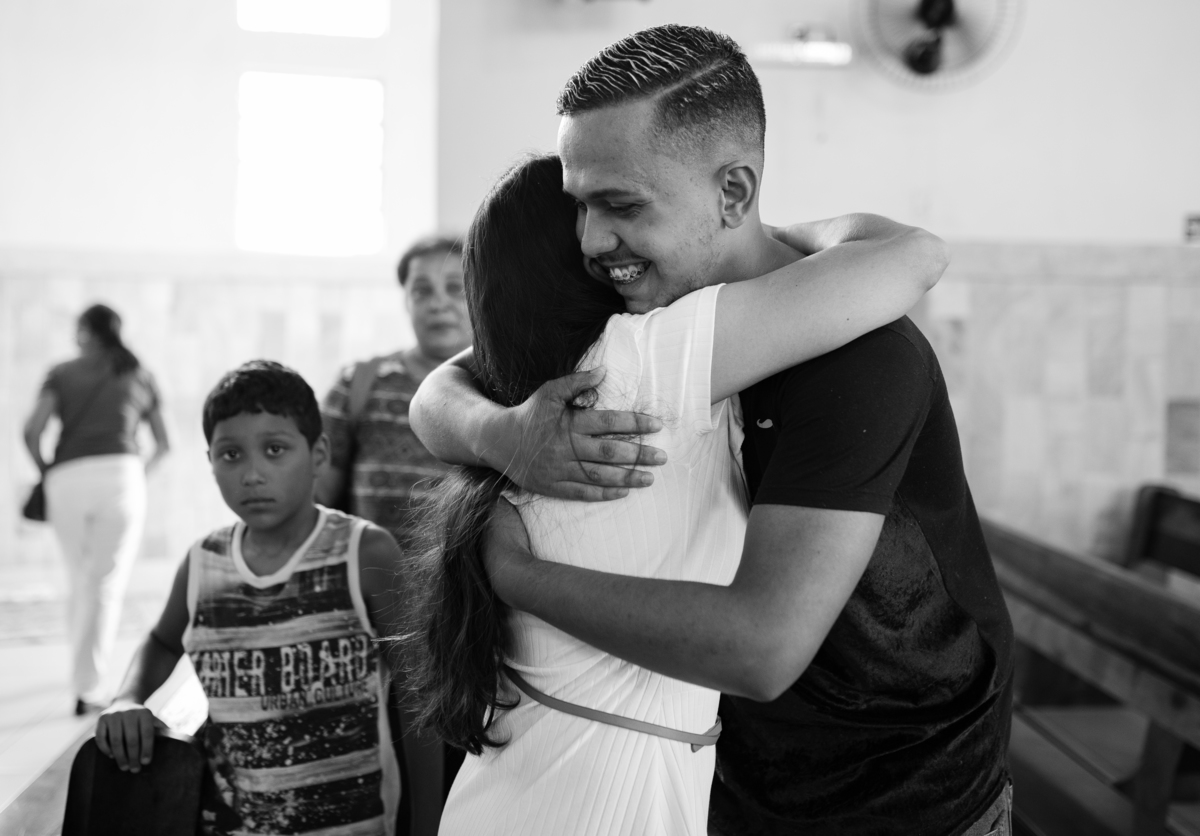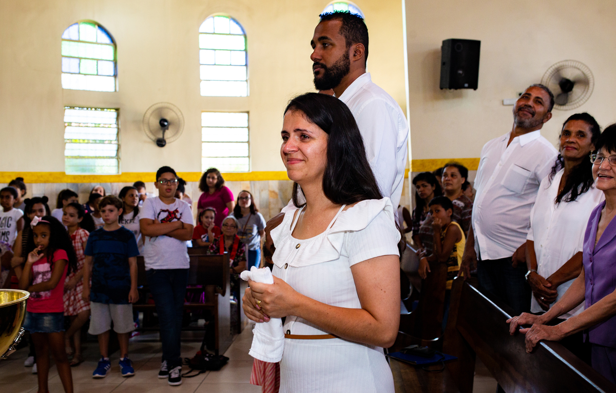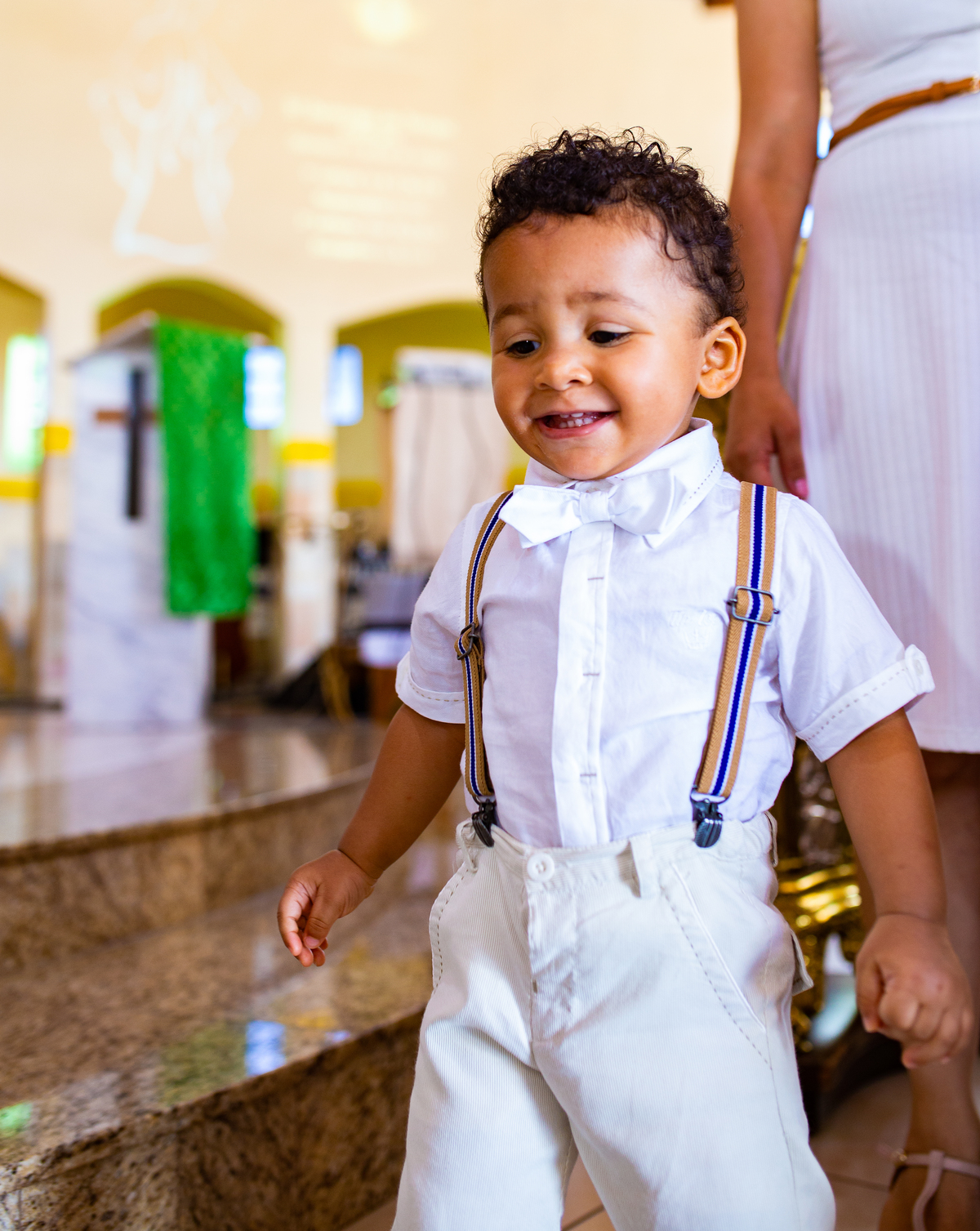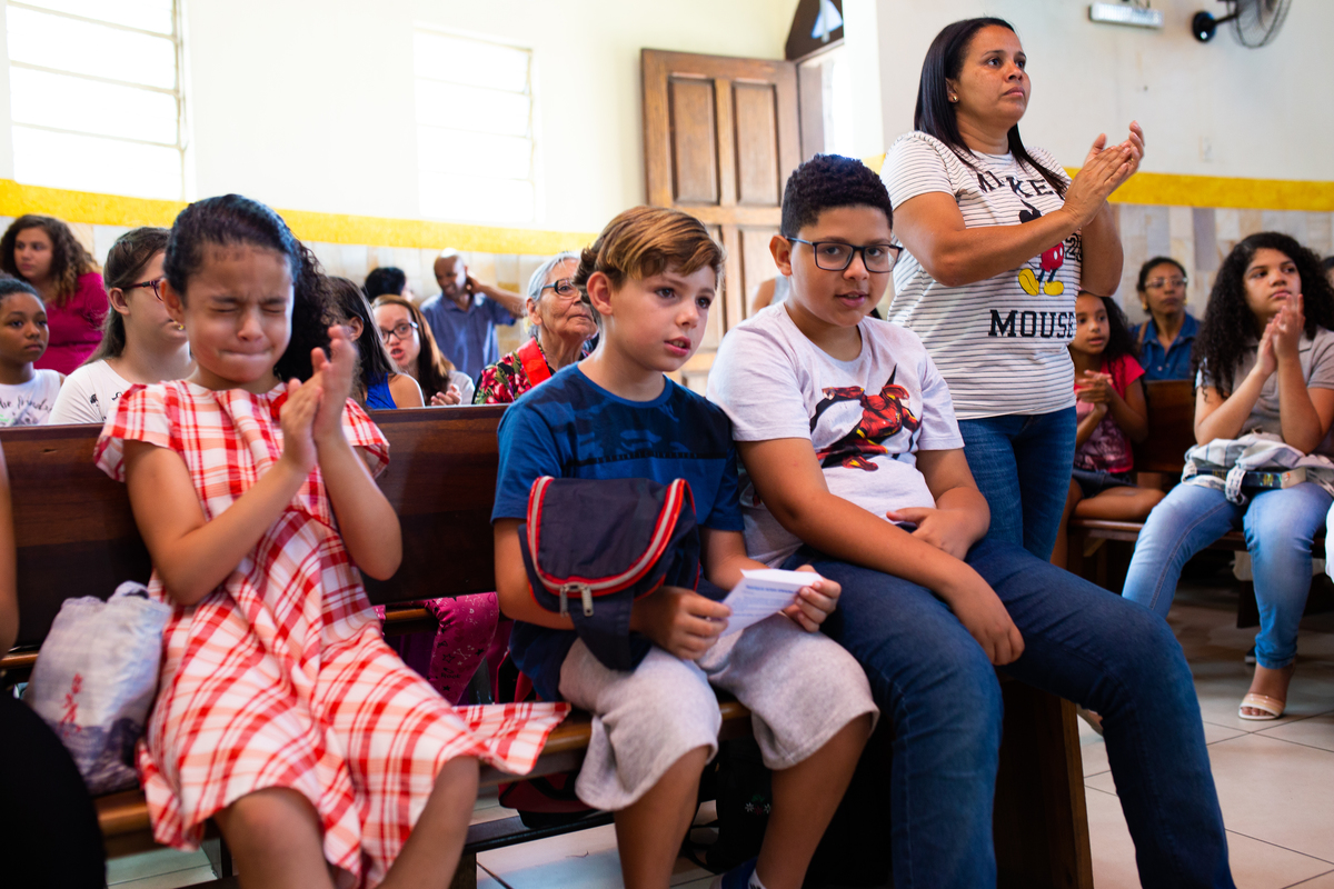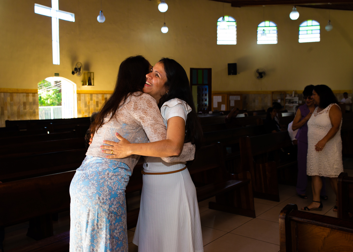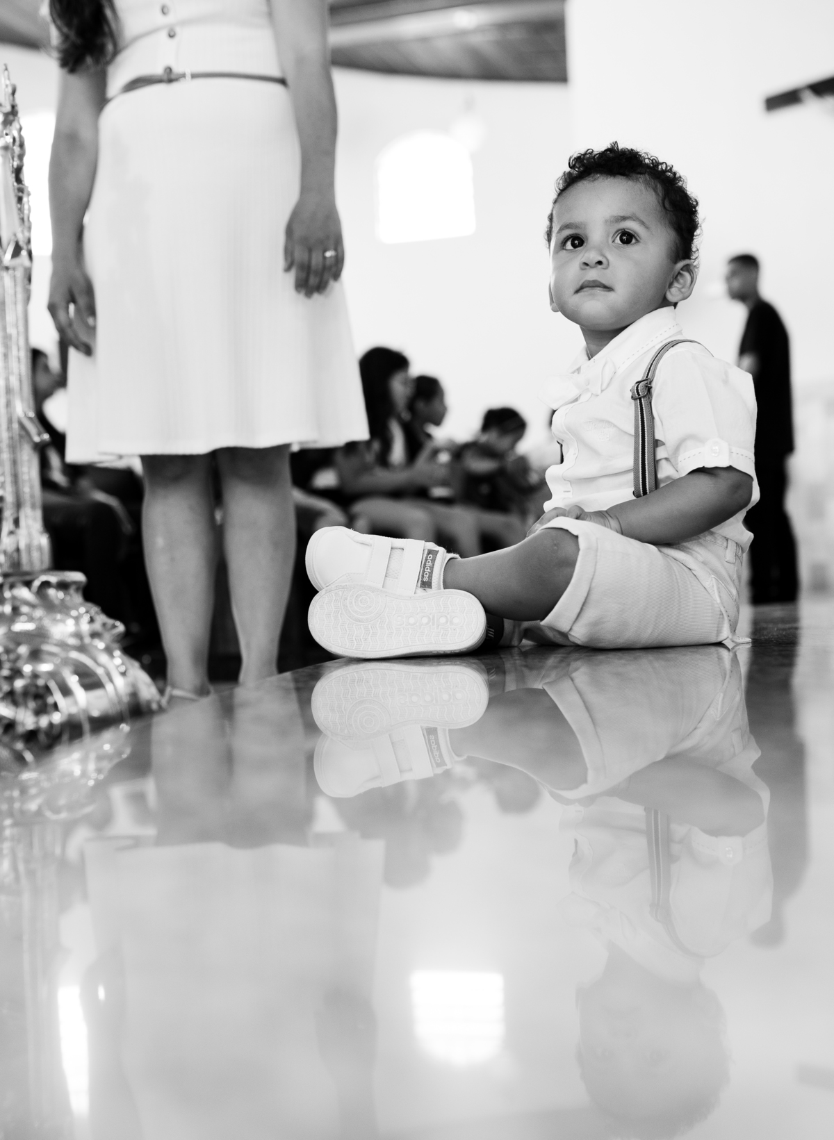Acompanho muitas famílias e já fotografei muitos momentos especiais. Com a família do Gabriel não foi diferente. Gabriel estava bastante animado e sapeca. Queria andar pela igreja e ver de perto a pia batismal onde receberia um dos sacramentos mais importantes do cristianismo. De tanta energia despendida ele acabou dormindo no meio da cerimônia e acreditem, acordou com a água do batismo molhando sua cabeça!!