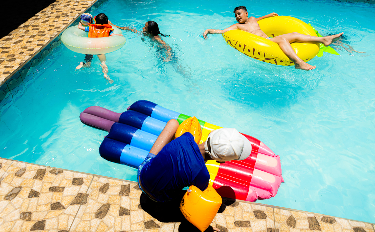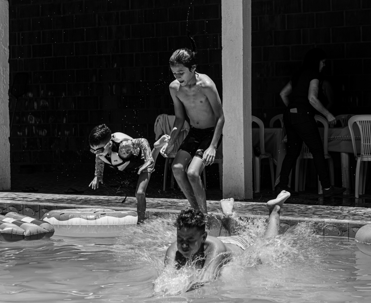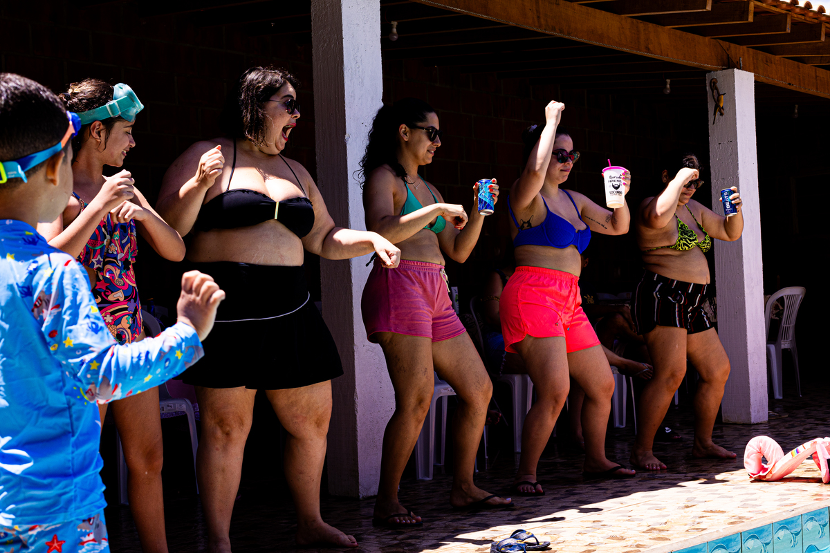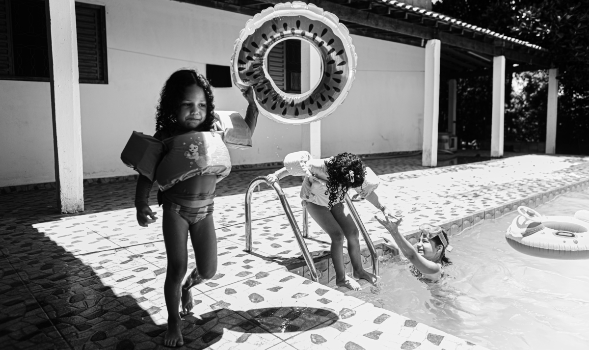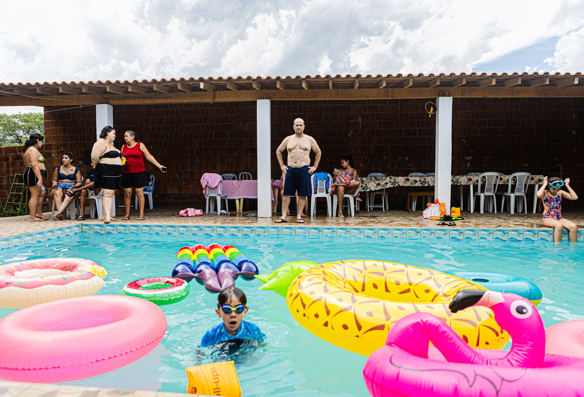 As férias e o final do ano são momentos de descanso, lazer, mas sobretudo de reunir a família para celebrar a vida, colocar a conversa em dia e compartilhar a mesa. Reunir gerações, fortalecer laços, e contabilizar os "causos" acontecidos, histórias. Fui convidado pela Liliane para registrar essa reunião familiar. Quando vou ao lugar levo mais do que minha câmera, ofereço o meu olhar, a minha maneira particular de contar aquela história, prestando atenção nos detalhes, nas interações, naquilo que o observador mais desatento pode deixar passar batido. Conto a história daquele dia. E o cotidiano tem a sua estética, tem as suas formas, suas cores, tons. As crianças movimentam a casa, levam para piscina as cores das boias, dos brinquedos, saltam, são elétricas, e oferecem, sem dúvidas, as melhores imagens do dia ensolarado.
